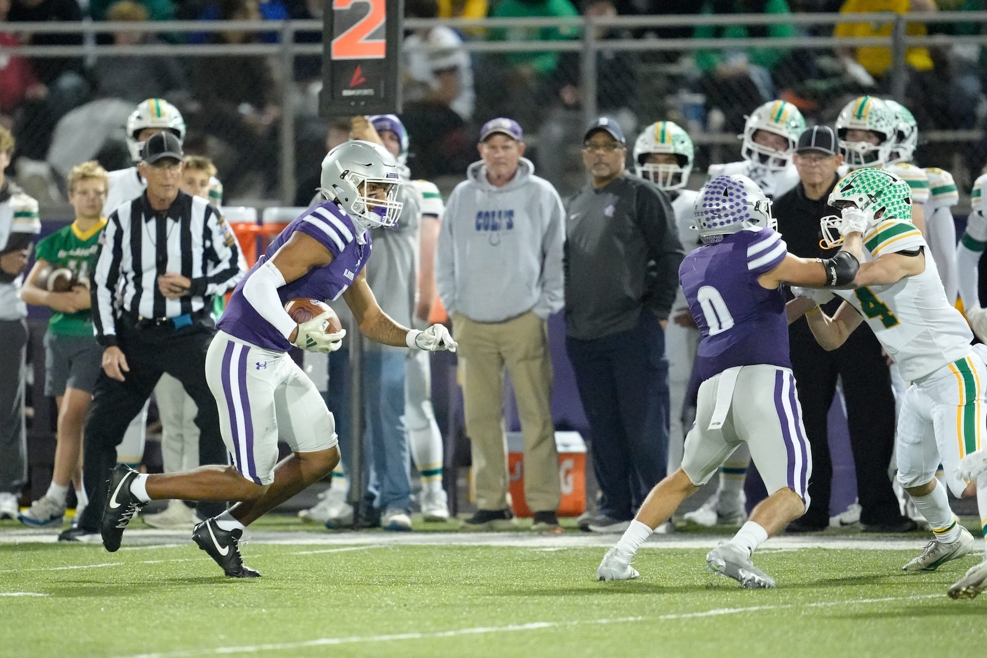 Along with the passing game, South’s running backs bombarded the Floyd Central defense. Senior running back Braylen Townsend produced over 100 yards for a second consecutive week—Townsend finished last week’s 31-28 win over Bloomington South with 172 yards on 42 carries. Against Floyd Central he went for 110 yards and a touchdown on 14 carries.