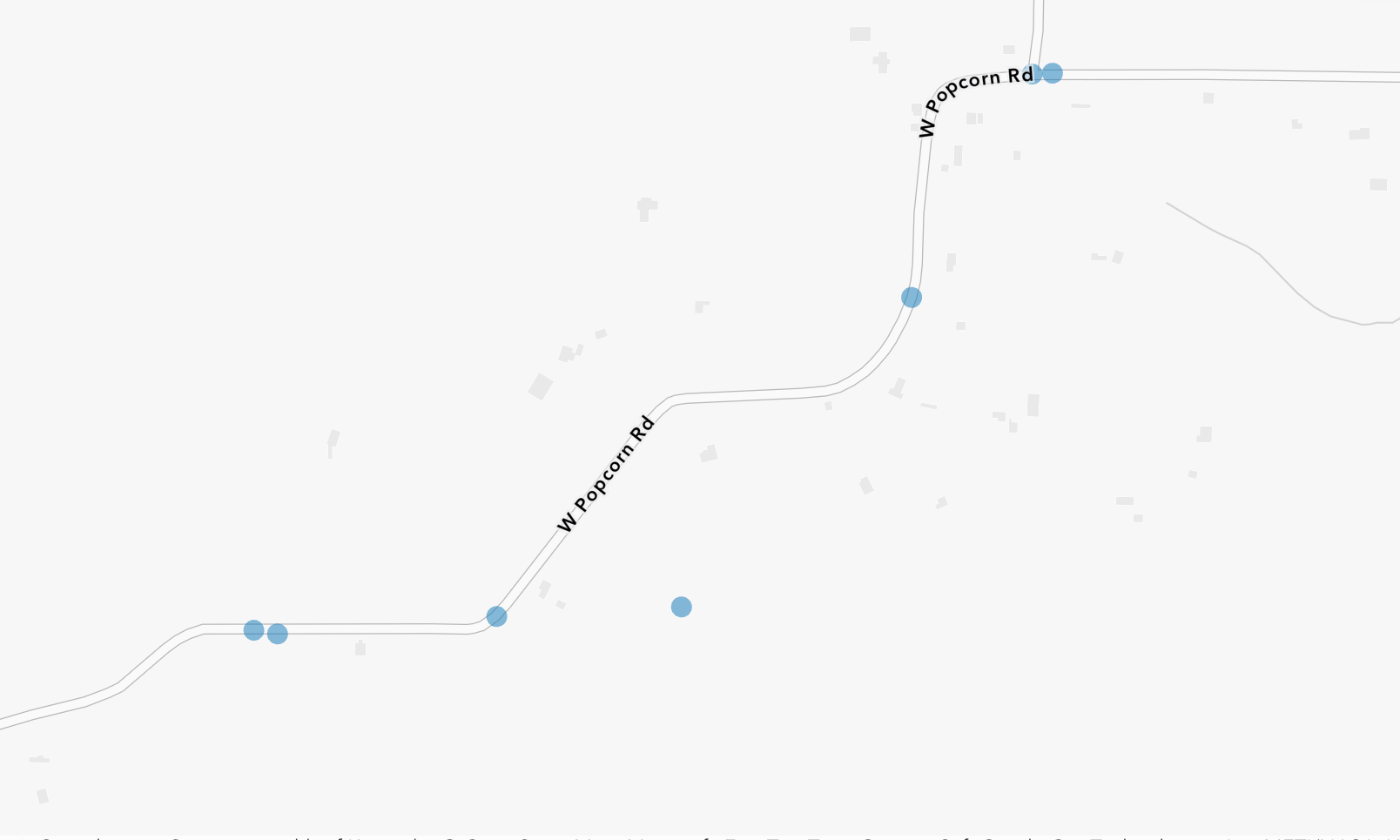 According to the city of Bloomington’s crash dashboard, from 2019 to 2024 the stretch of Popcorn Road west of Harrodsburg has seen at least seven crashes, three which caused injury, and one of those a serious injury. The “manner” of the crash in five out of the seven crashes was “ran off road.”