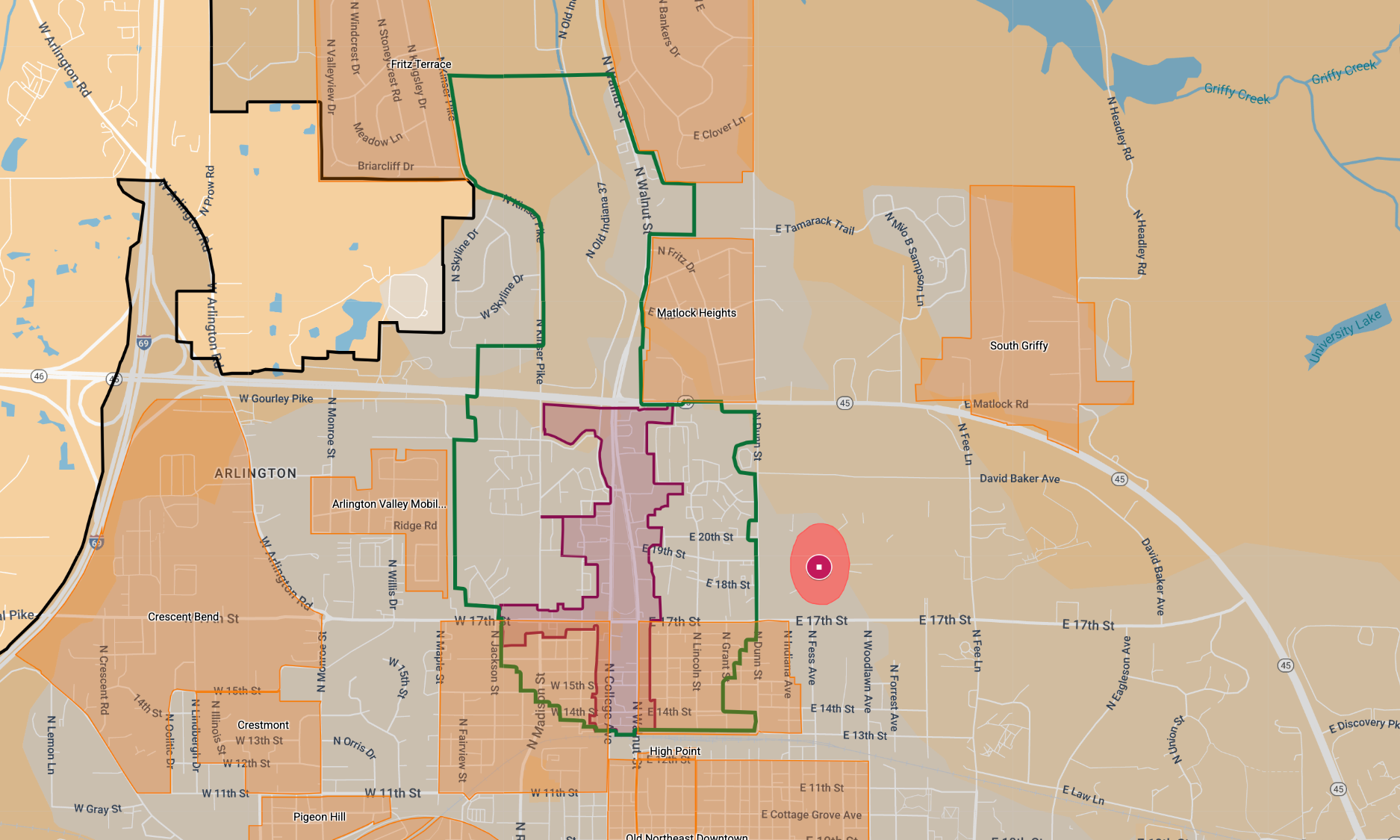 The name “Stadium District” did not evolve from a process. On Wednesday, Stosberg recounted how the name “Stadium District” was chosen after a conversation with a representative of the Greater Bloomington Chamber of Commerce, who had presented the naming concept as “Sports District.” Stosberg said, “I didn’t like ‘Sports District’ because I felt like … there are also other places in Bloomington you could call a ‘Sports District’ ...” Stosberg added, “And I thought that ‘Stadium’ was a little bit more specific, and I threw that name out as a suggestion to him—not necessarily thinking that it was going to stick. But then it apparently did.”