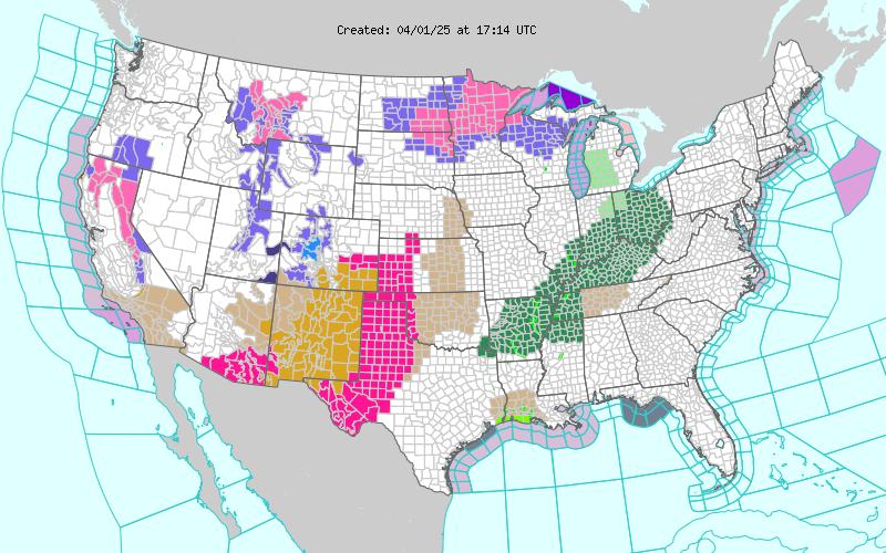 Starting late afternoon April 2: All hazards possible, according to NWS—floods, thunderstorms, hail, tornadoes