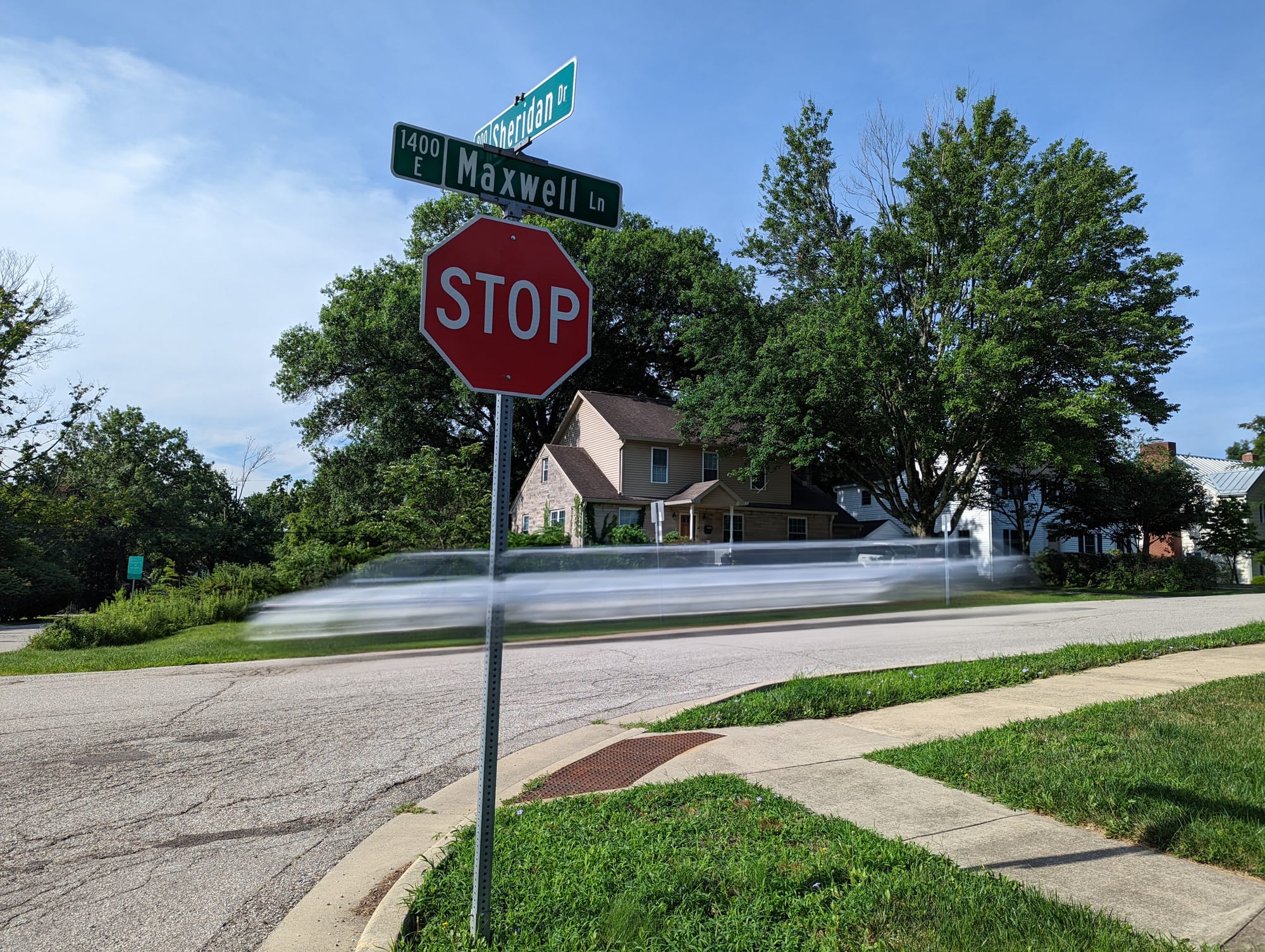The additional stop signs make the intersection at Maxwell Lane and Sheridan Drive an all-way stop. Currently it’s a two-way stop, which requires traffic on Sheridan to stop at Maxwell.