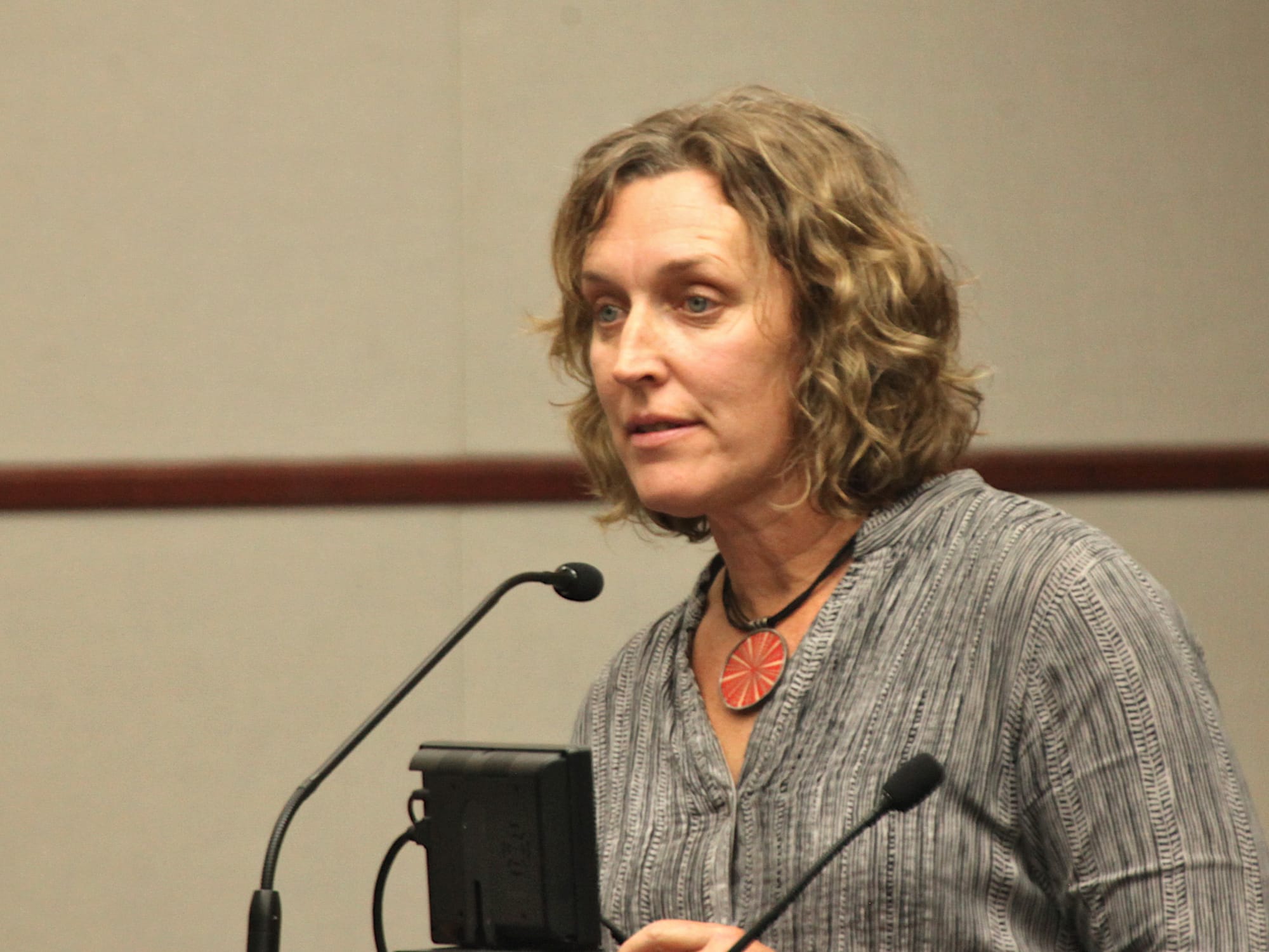 In her remarks before voting for the stop sign, Isabel Piedmont-Smith said she fears that putting a stop sign at the location could make it more dangerous, because pedestrians think cars will stop when they won’t actually stop.