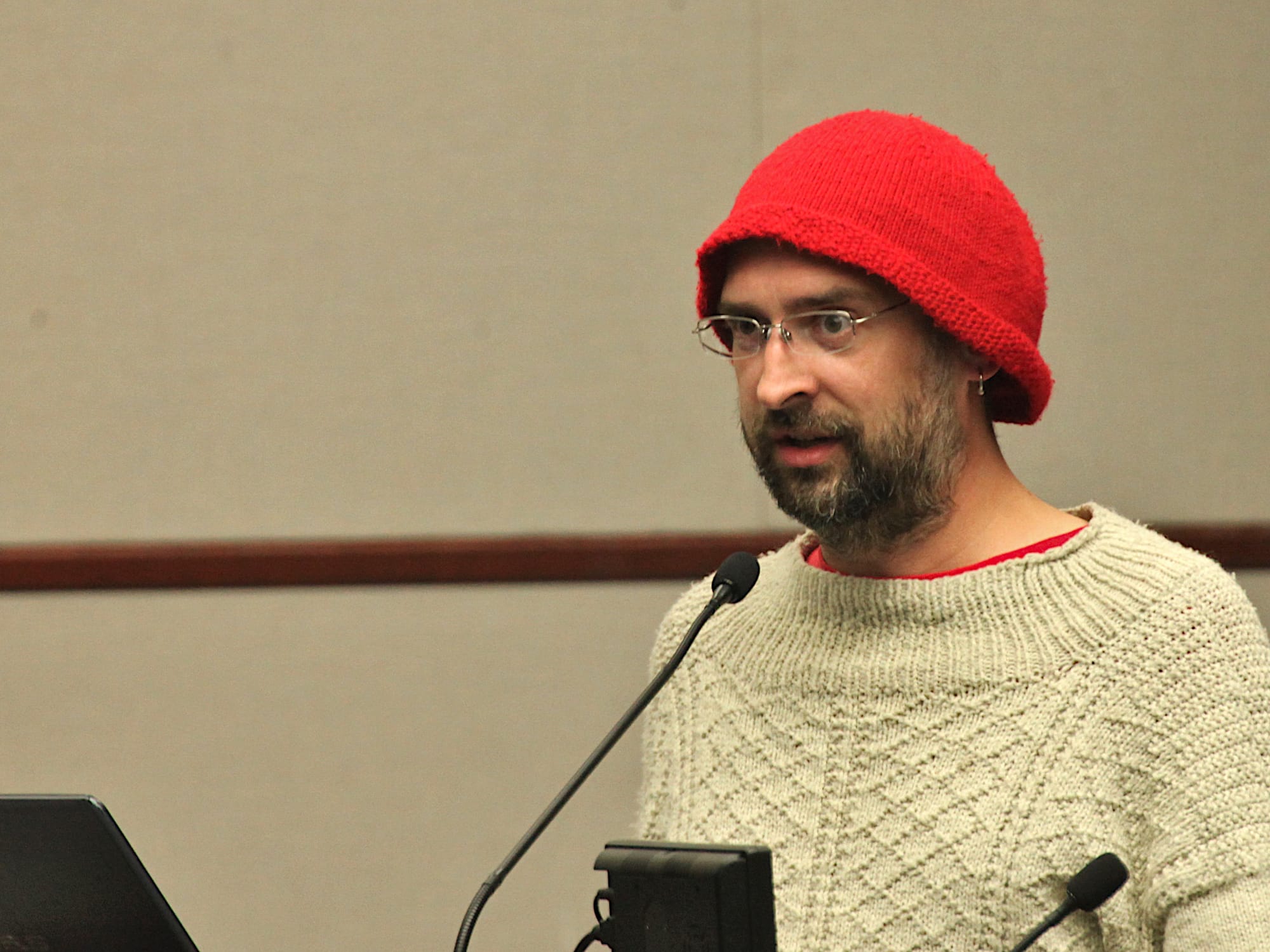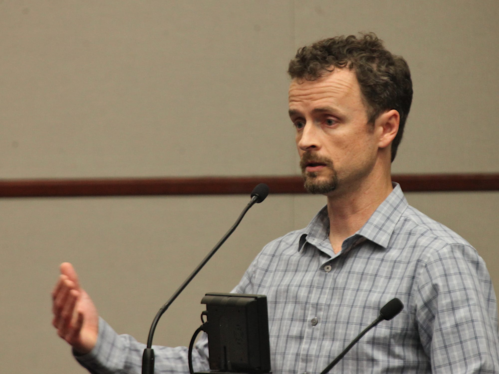 Offering full-throated opposition to the installation of a stop sign was Greg Alexander, who led off by saying he was glad that the council was looking at intersections. He continued, “I’ve got some intersections for you: Madison and 17th; College and Dodds; Walnut and Kirkwood; Rogers and Hays.”