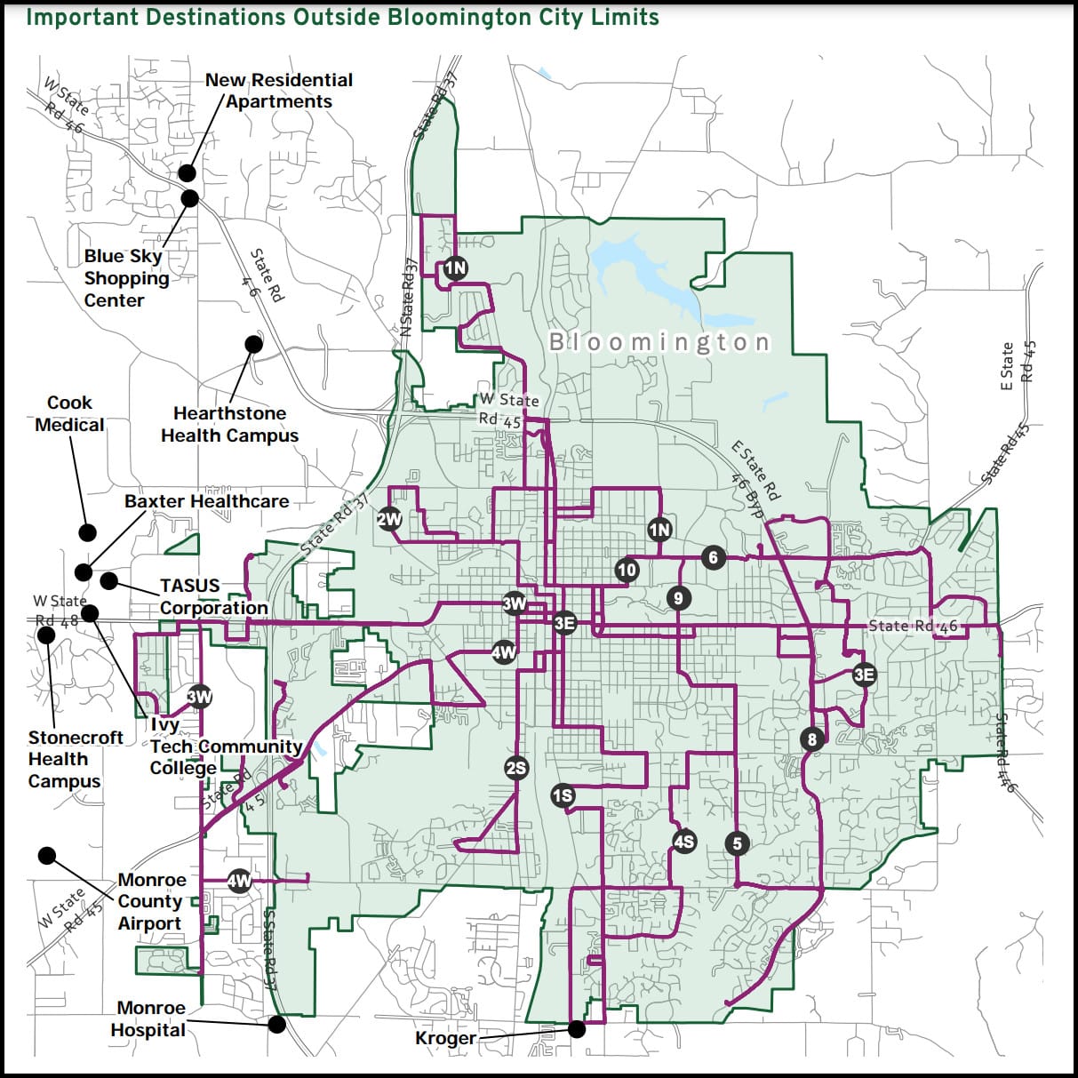 Part of the context for the strategic plan’s analysis of bus service outside the city limits is a September 2022 Bloomington city council resolution that supported BT expansion.