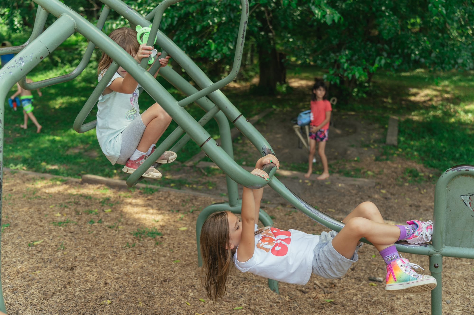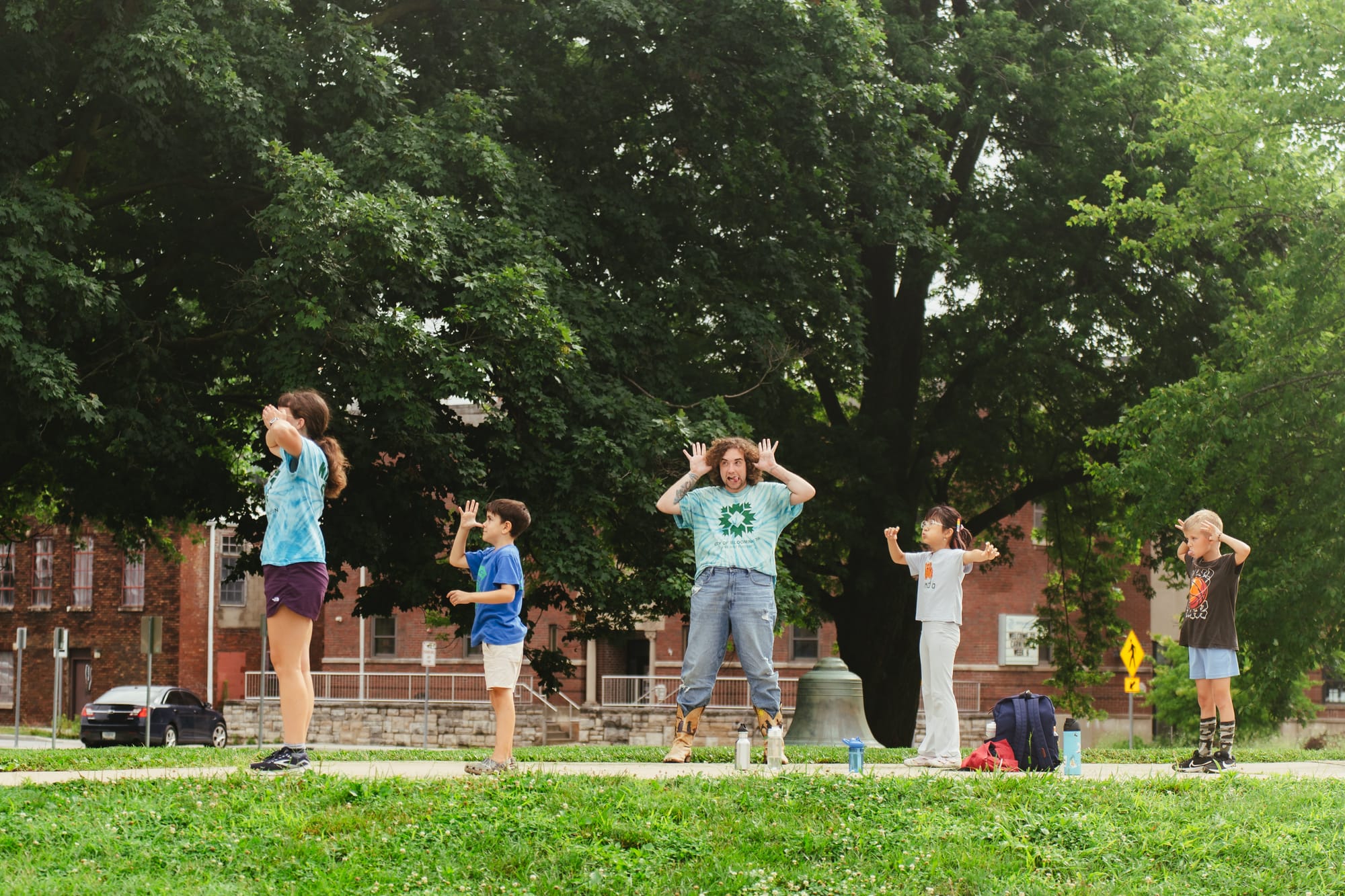 The camp’s roughly 60 total kids spend most of their time outside. “We like to say that we are ‘outsidesy,’ not outdoorsy. So we are outside a lot, but we’re not like climbing, and hiking, and archery, and all of that.” Camp activities often take place right behind the Allison-Jukebox building at the Waldron Hill Buskirk Park, which is still known to many Bloomington residents as the Third Street Park.