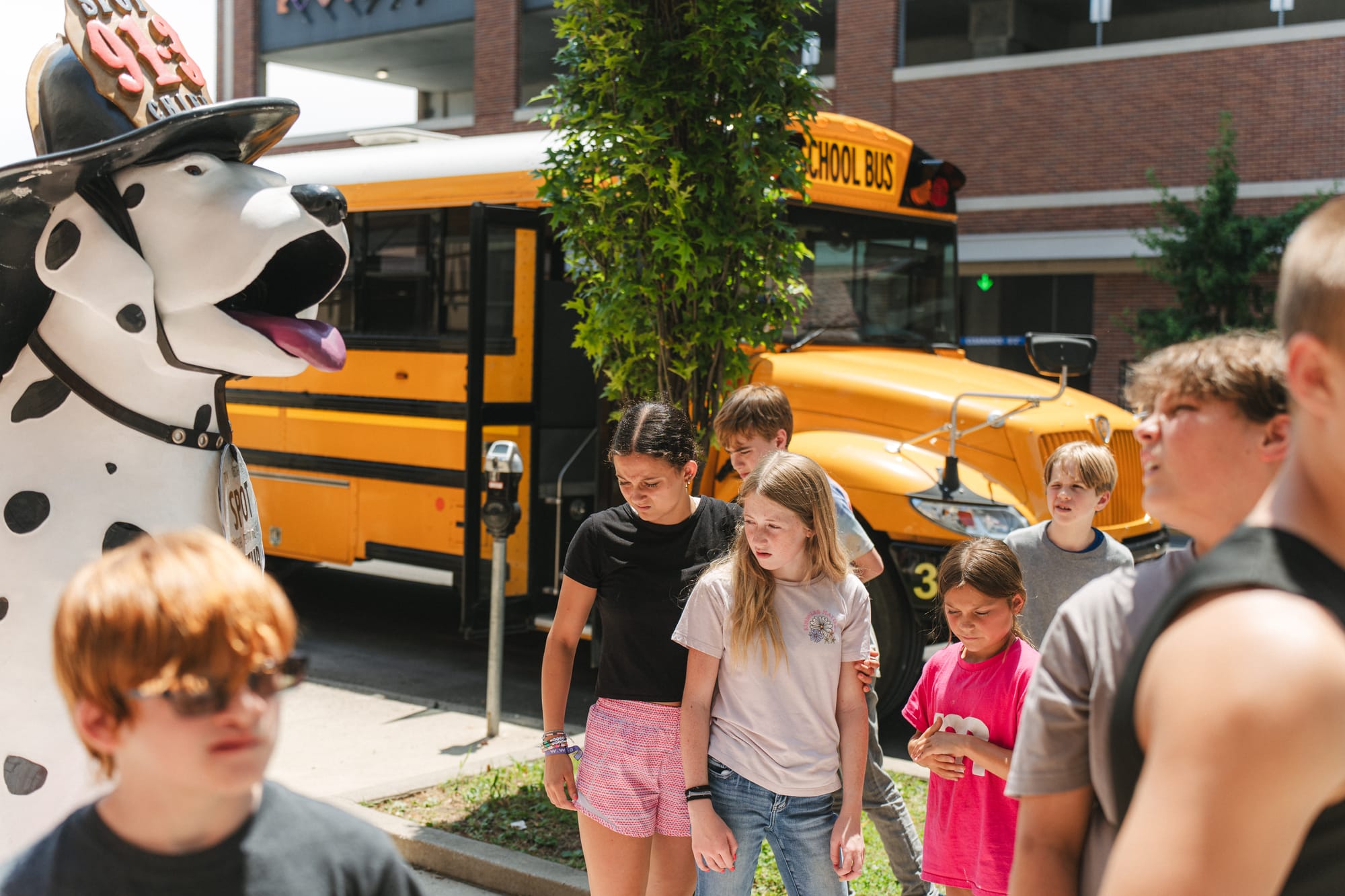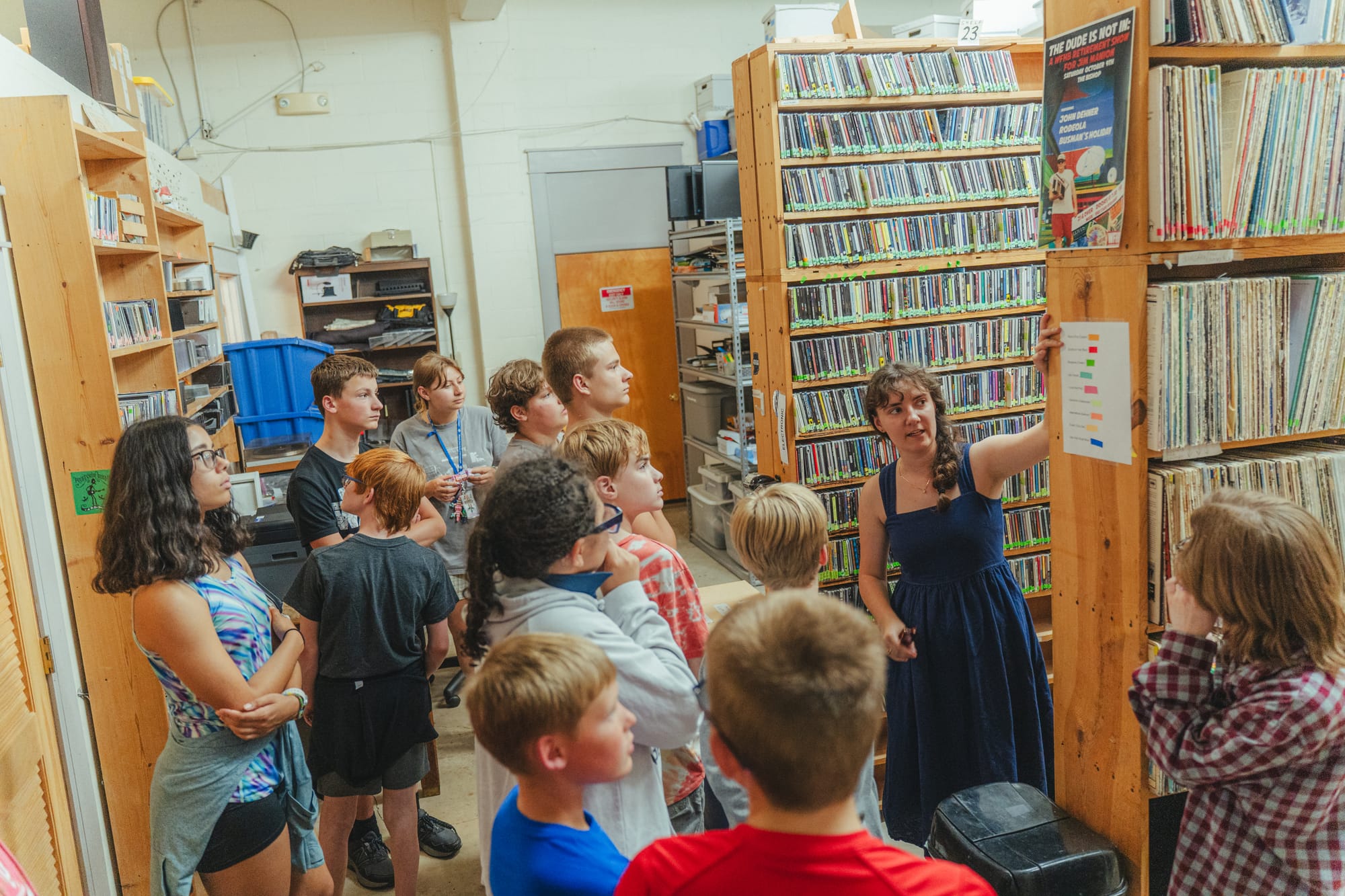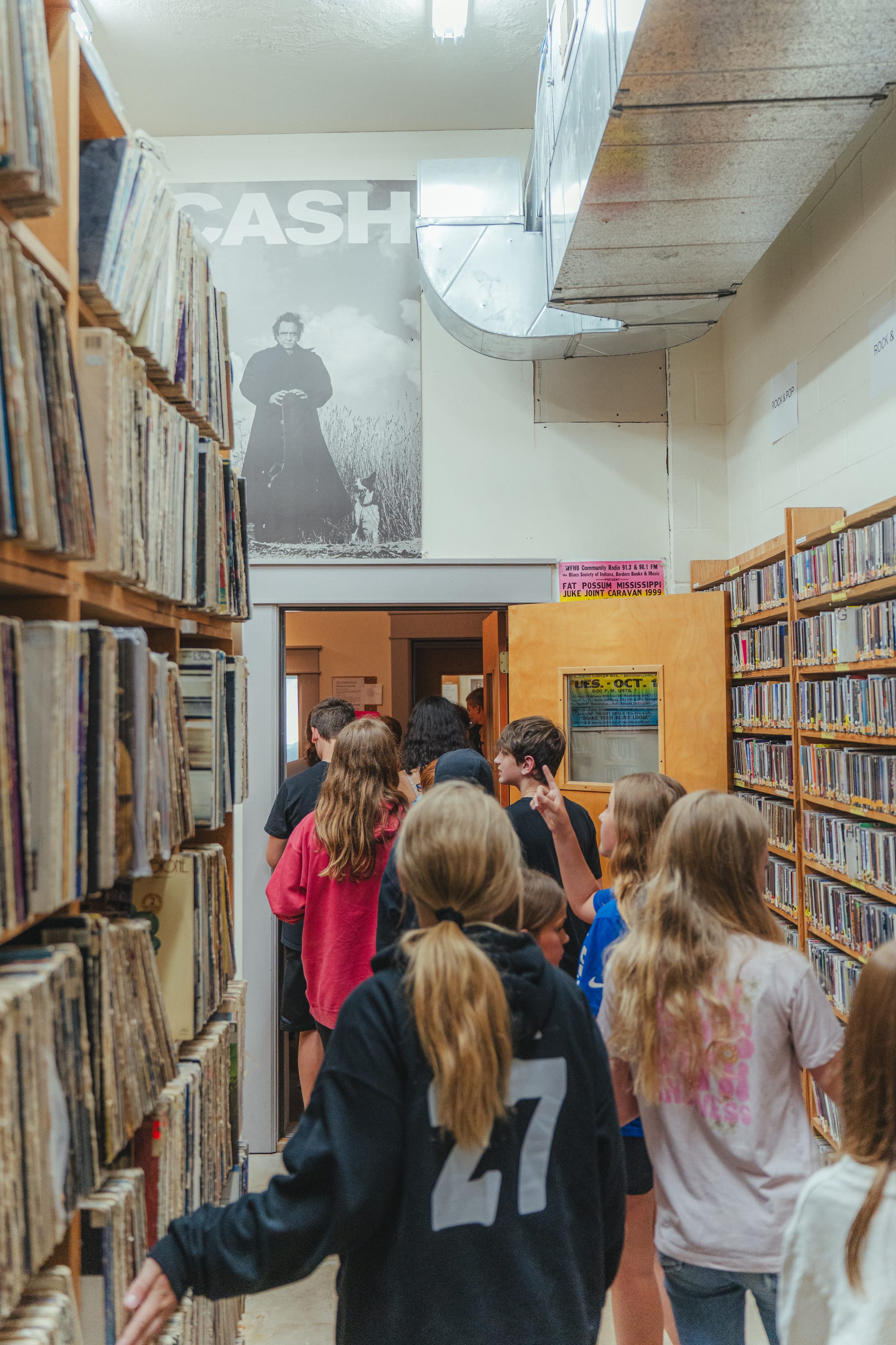 Campers from the Boys and Girls Club of Ellettsville visit and tour the WFHB studio in downtown Bloomington. (Kelton O'Connell, July 8, 2025)