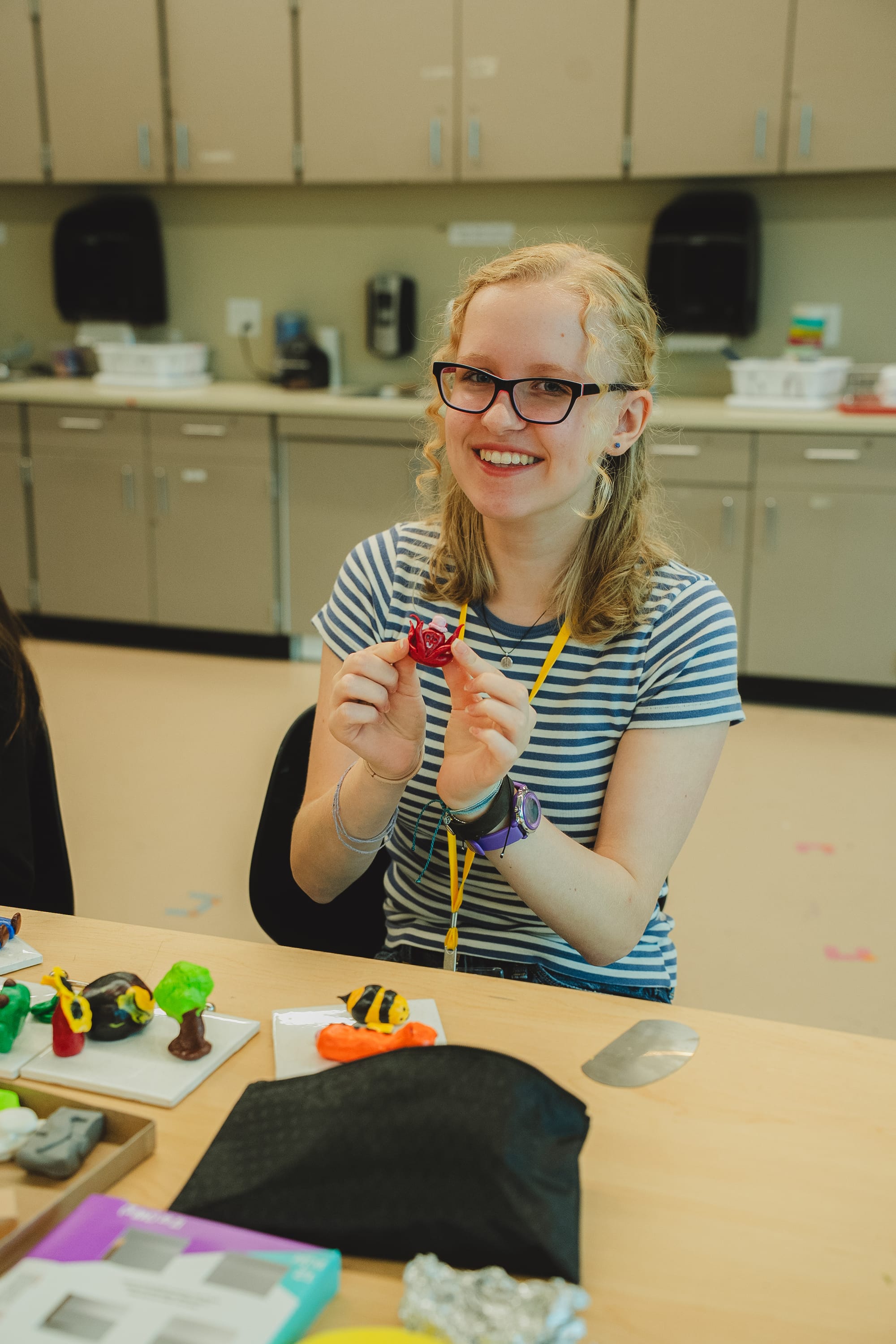 Left: This is Hope’s artwork from her sculpting camp at Ivy Tech. She said that she gets ideas for creations from observing things around her. Right: Edith is an eighth grader in Ivy Tech’s sculpting camp. (Kelton O'Connell, July 16, 2025)