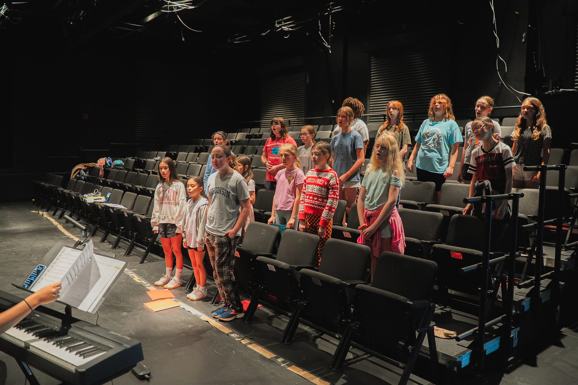 Constellation's Kids Broadway Bootcamp rehearses a version of A Christmas Story. The program is designed to be a snapshot of a professional rehearsal process, and is tied to Constellation’s holiday show each year. (Kelton O'Connell, July 17, 2025)