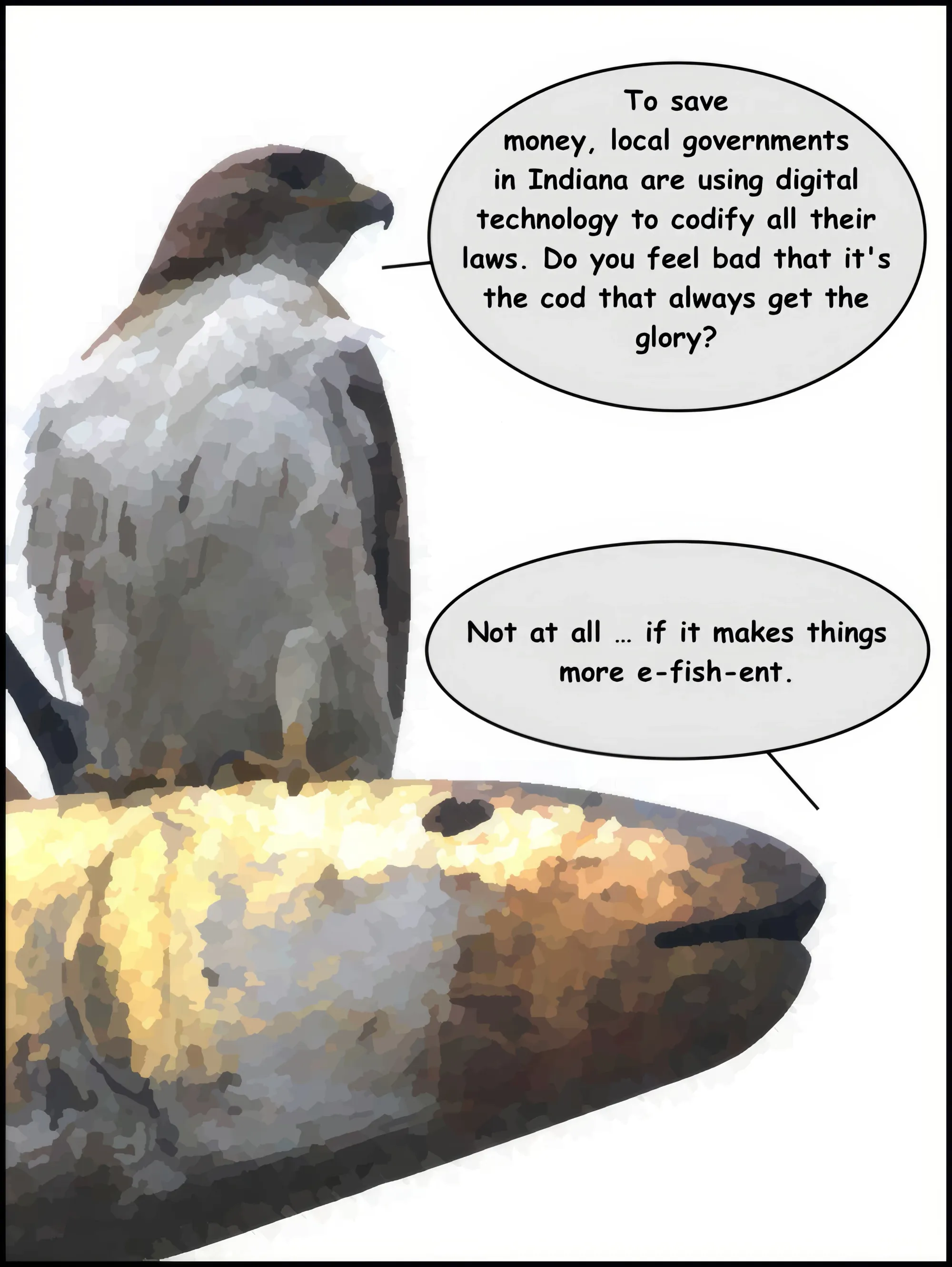 Hawk: To save money, local governments in Indiana are using digital technology to codify all their laws. Do you feel bad that it's the cod that always get the glory? How does Fish answer?
