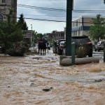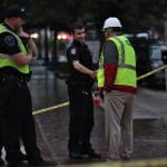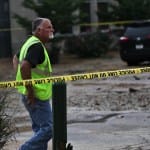Motorists who returned to their cars parked inside the blocked off area got instructions from police officers. Some were able to just head the “wrong” way up Washington out of the area. Others, who had parked westbound on Kirkwood east of Washington, needed to wait a bit—for other cars to leave, so they would not have to pull forward towards the break. That’s because it was not clear how stable the roadway was.