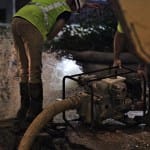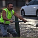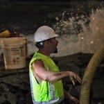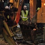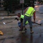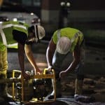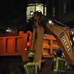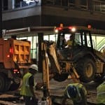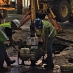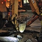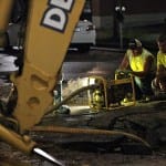 The city of Bloomington’s utilities director, Vic Kelson, was on the scene around 8:30 p.m. He told The Beacon the break would take at least eight hours to repair after the water was turned off. Just before 9 p.m. a crew was working with long T-handled wrenches to turn the valves. Kelson did not think new asphalt would be laid down by the end of the night.
