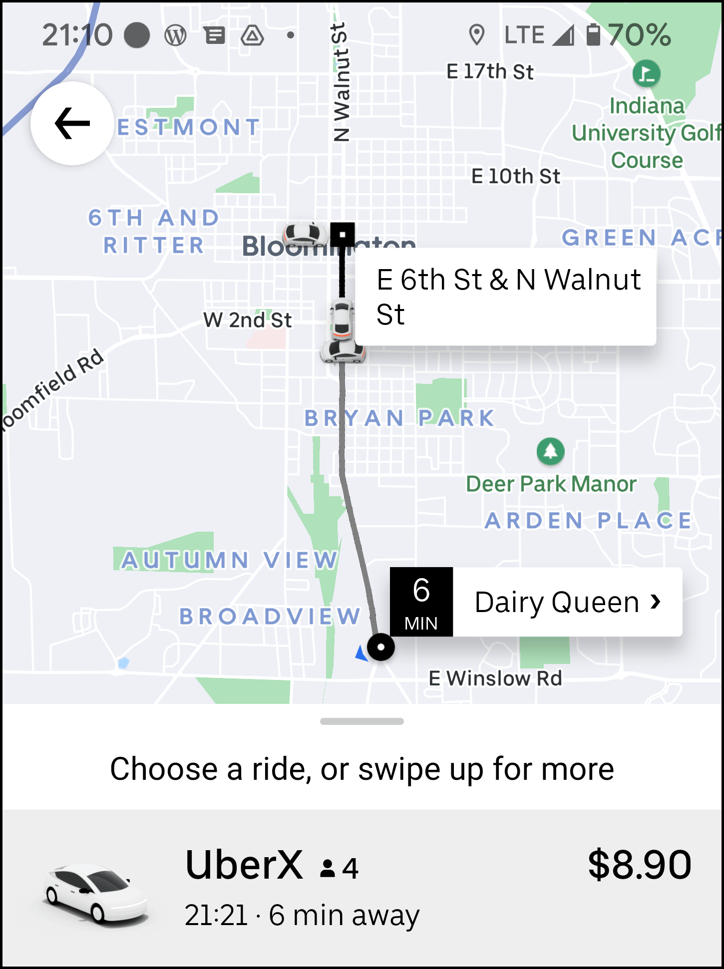 The Uber driver took about 11 minutes to arrive after The B Square’s ride was ordered. The driver indicated that there was not any kind of flag in the system to alert him to the fact that the ride was getting subsidized by BT. In fact, he was not even familiar with the concept of BT subsidized rides.