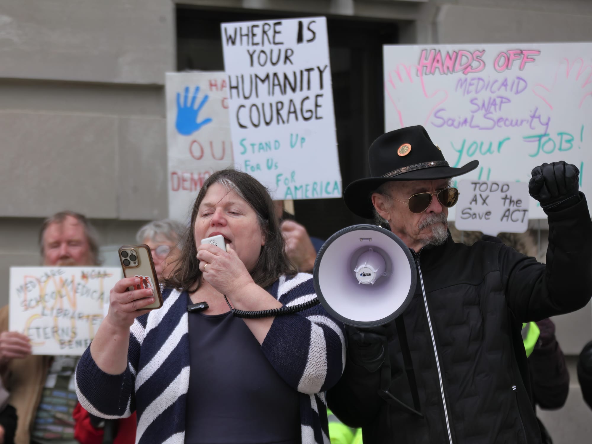Higgs said, "We're sending postcards and emails flooding the phone lines. But our elected officials, like Senator Todd Young, are still not listening." She continued, "They're not listening when we say 2 million Hoosiers rely on Medicaid, and that cuts to Medicaid will close rural hospitals and harm Hoosiers. They're not listening when we say defunding and closing public schools silences the heartbeat of our rural and small town communities."