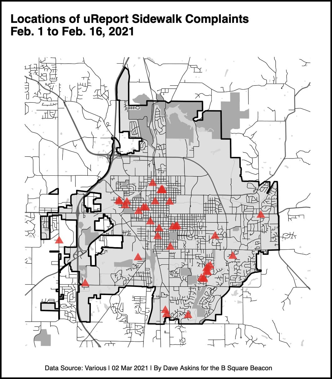 In the city of Bloomington, property owners are responsible under local law for clearing the sidewalks next to their land.