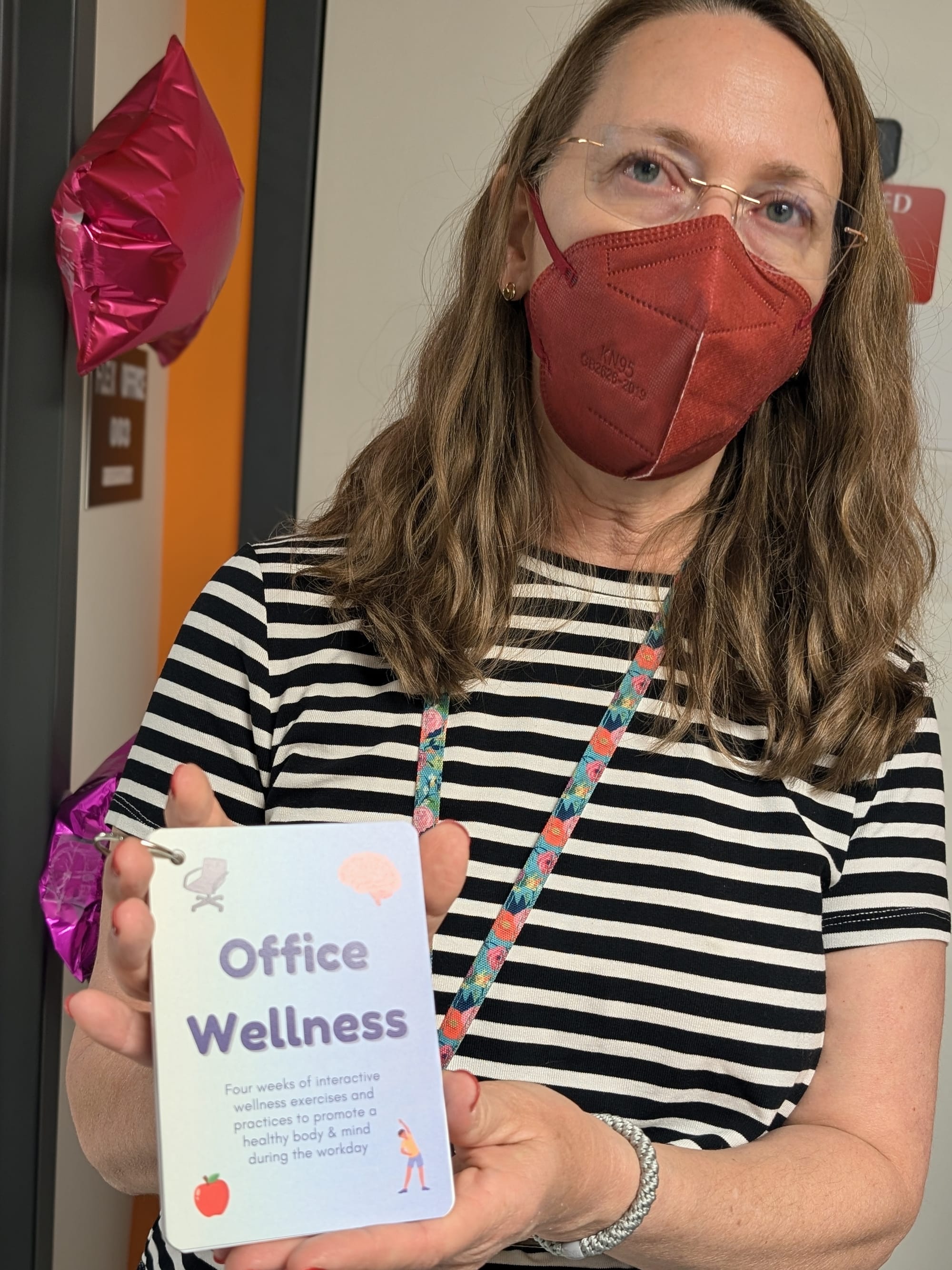 Christina Kempf, who works in behavioral health, described a project she'd worked on with an intern (Emma), to create a detailed wellness guide to remind employees to take care of their own physical and emotional well-being.