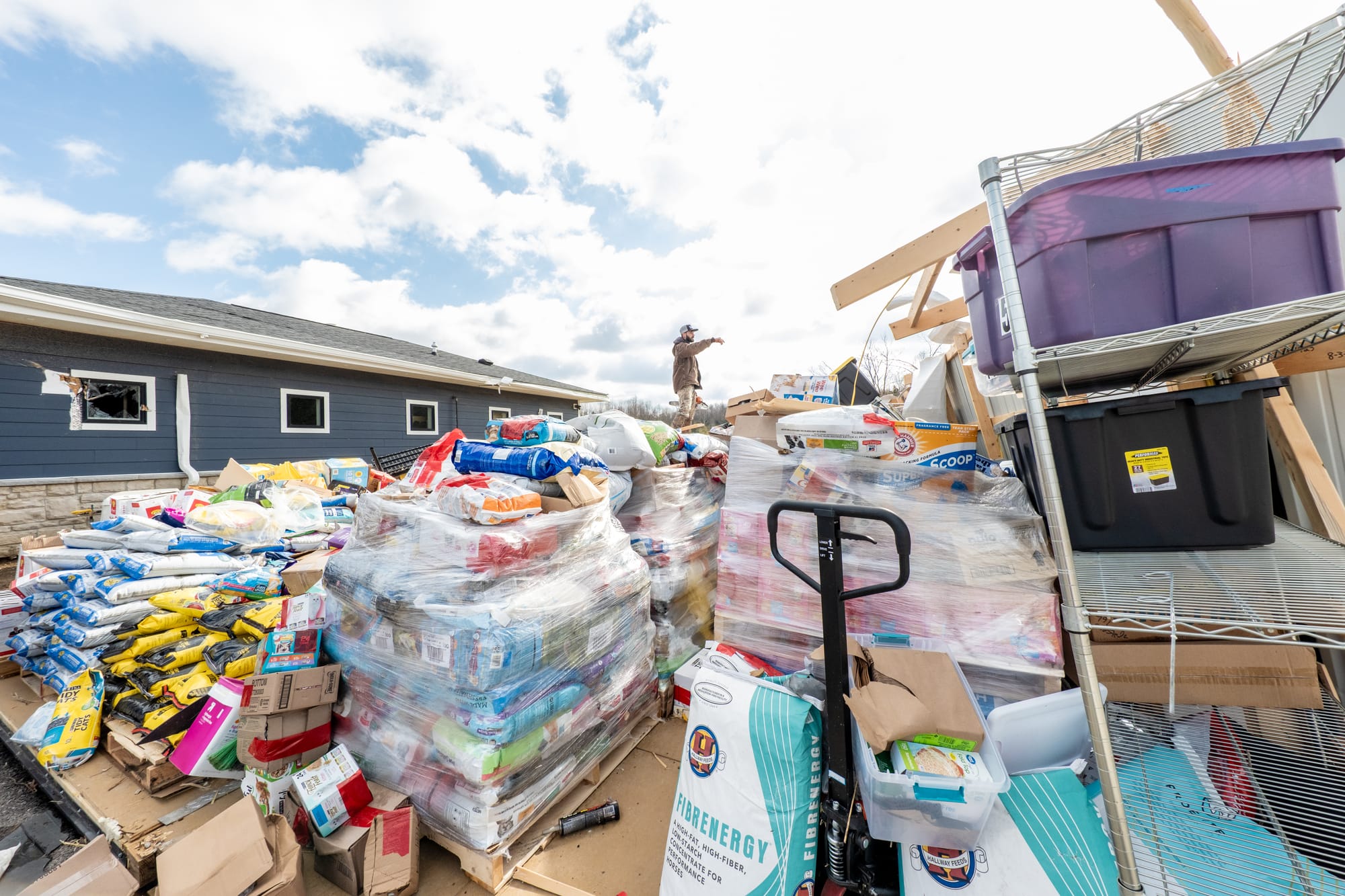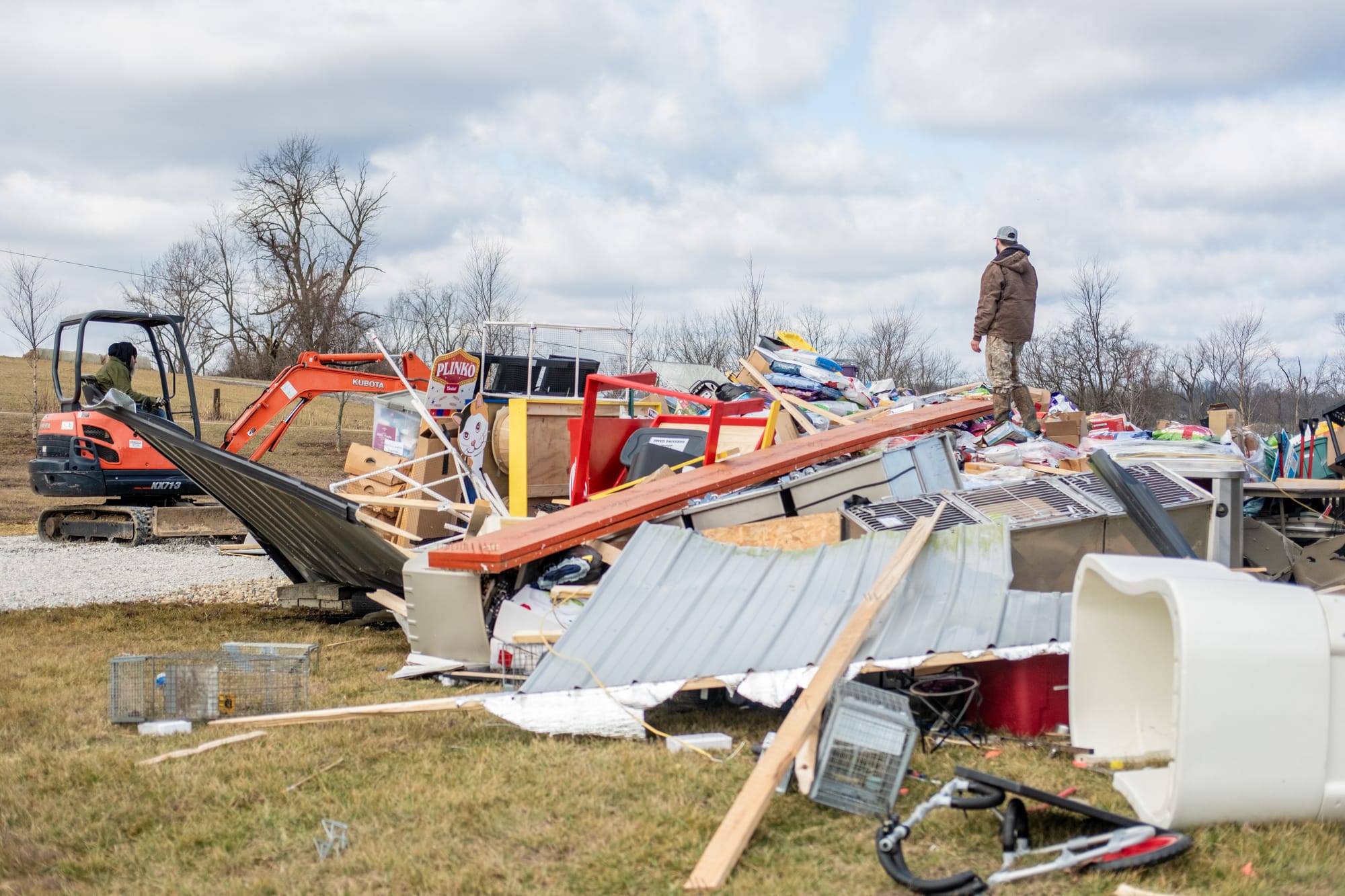 Sowders Landscaping has assisted with cleanup efforts, providing a compact excavator for light demolition and manpower to help recover supplies.