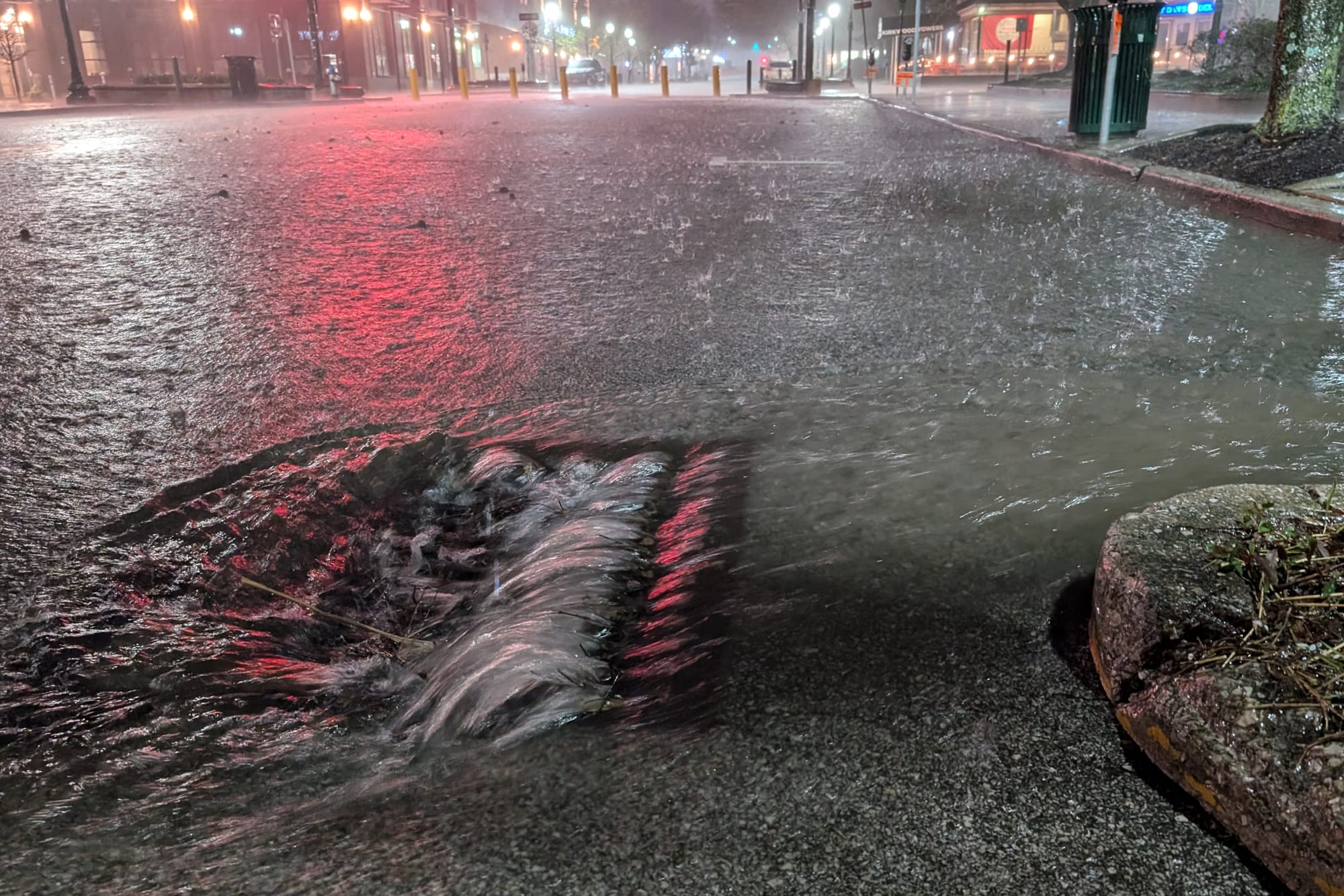 9:54 p.m. It's now started to rain hard in downtown Bloomington.