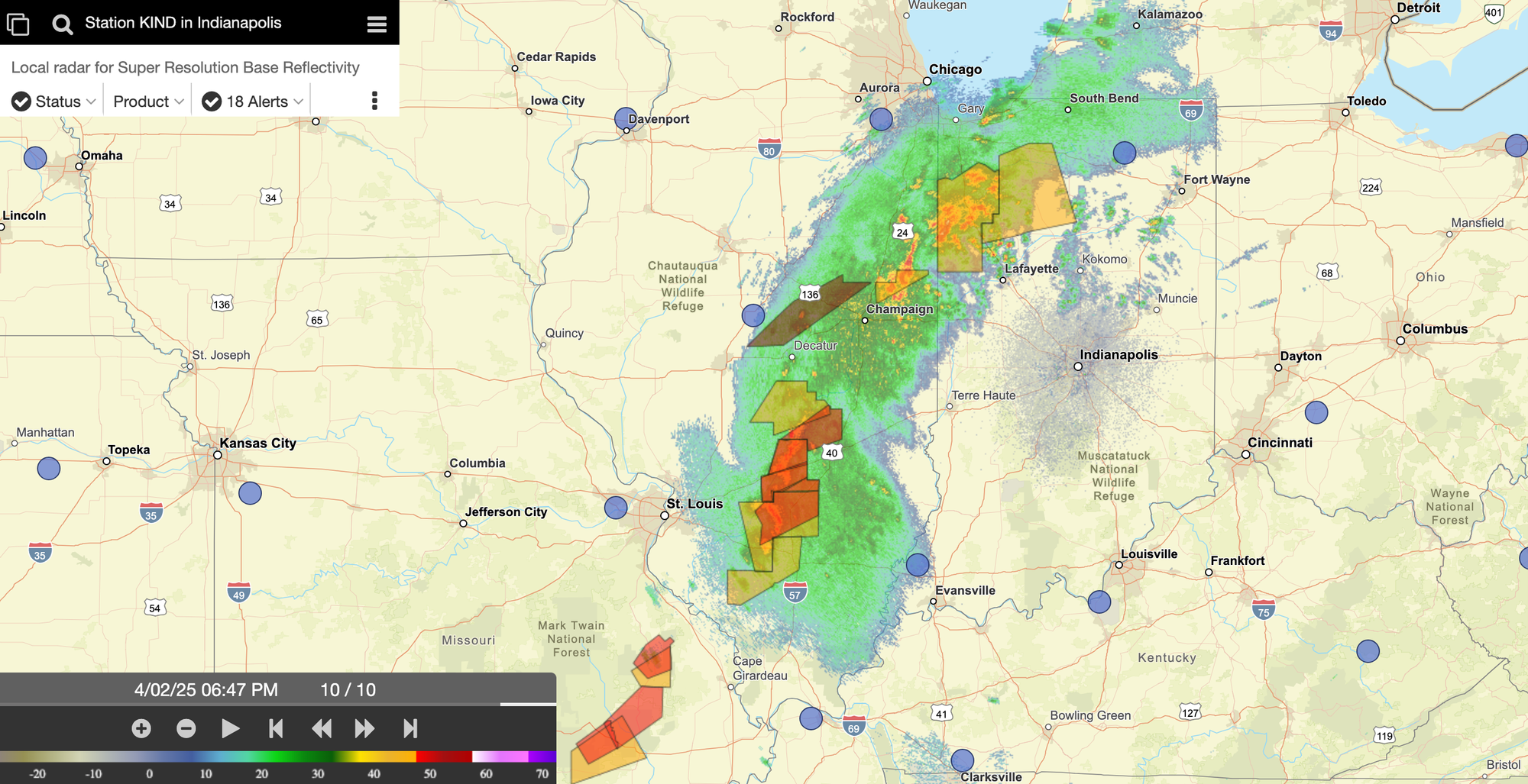 As of 6:50 p.m. NWS radar showed the line of the most severe weather just west of the Illinois-Indiana border headed for southern Indiana.
