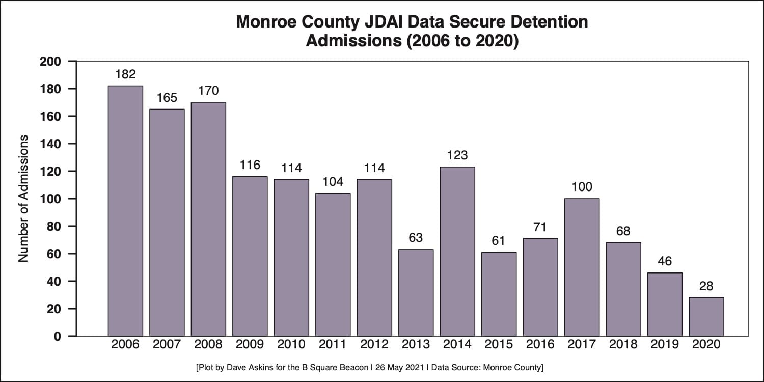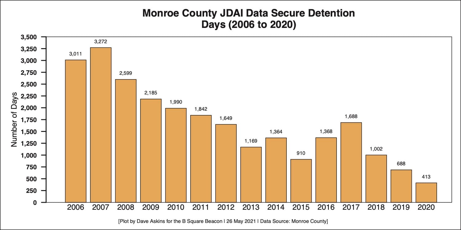 McKim added, “We invest a huge amount of money in alternatives to incarceration for youth in Monroe County. And I think that’s money extremely well spent.” About the table showing decreases in dollar amounts, McKim said it’s just an indicator of how little the county is forced to use secure detention.”