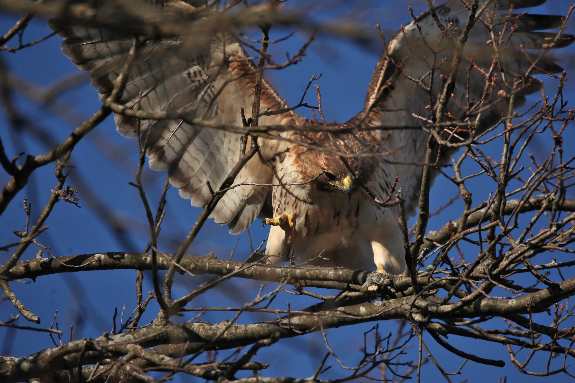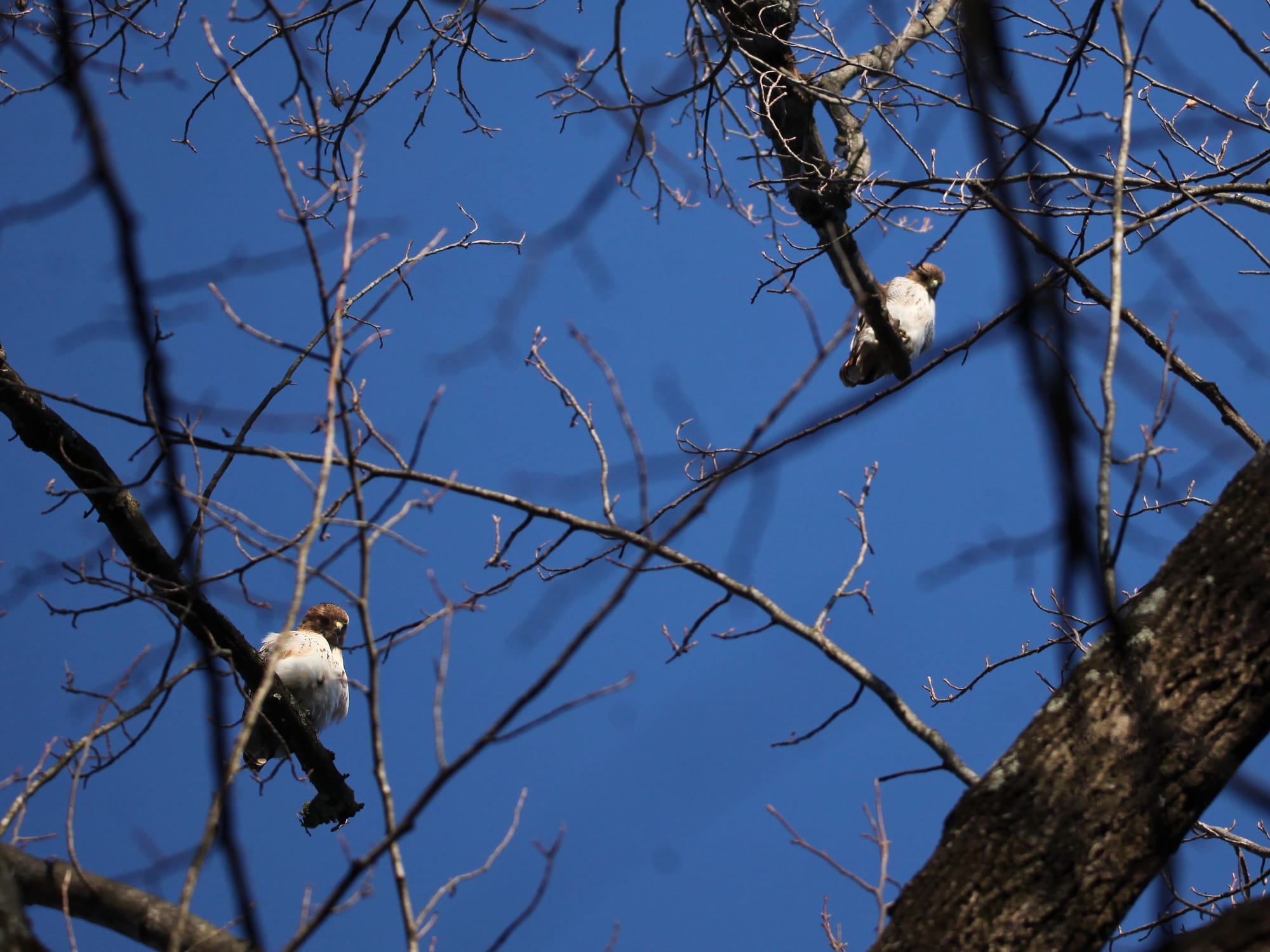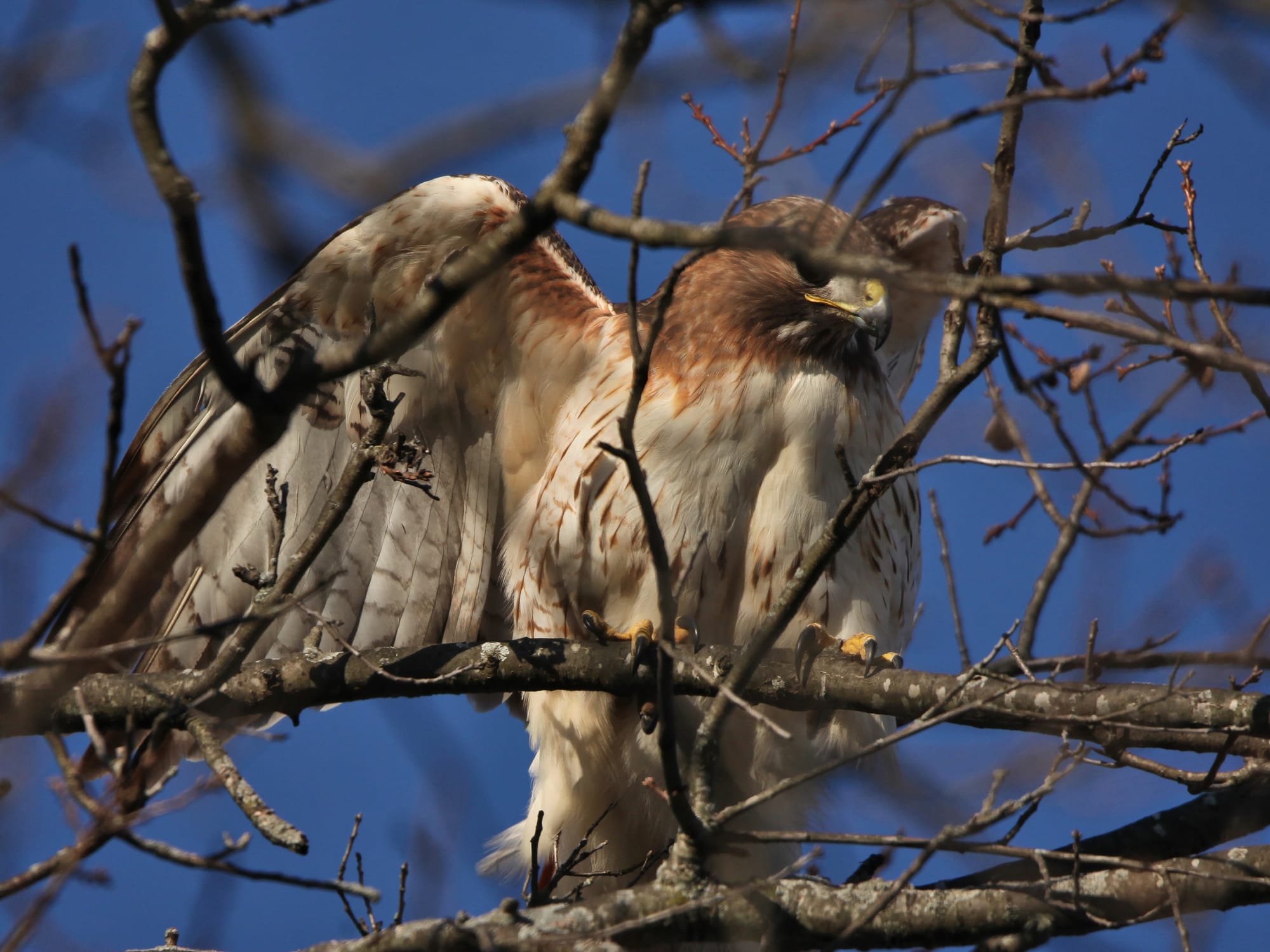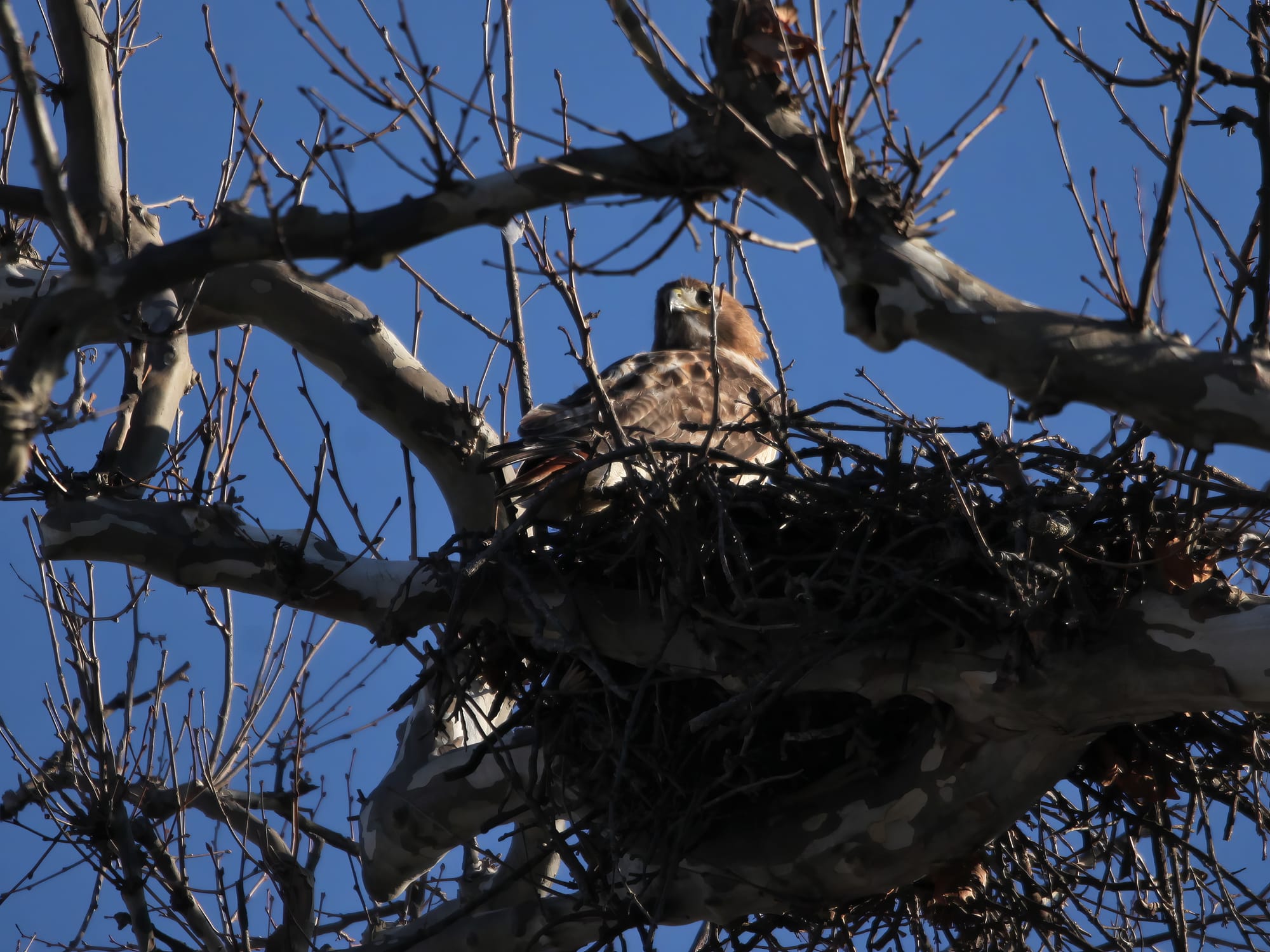 Again this year, a pair of red-tailed hawks appears to be nesting in the big Sycamore next to Bryan Hall on Indiana University’s Bloomington campus.