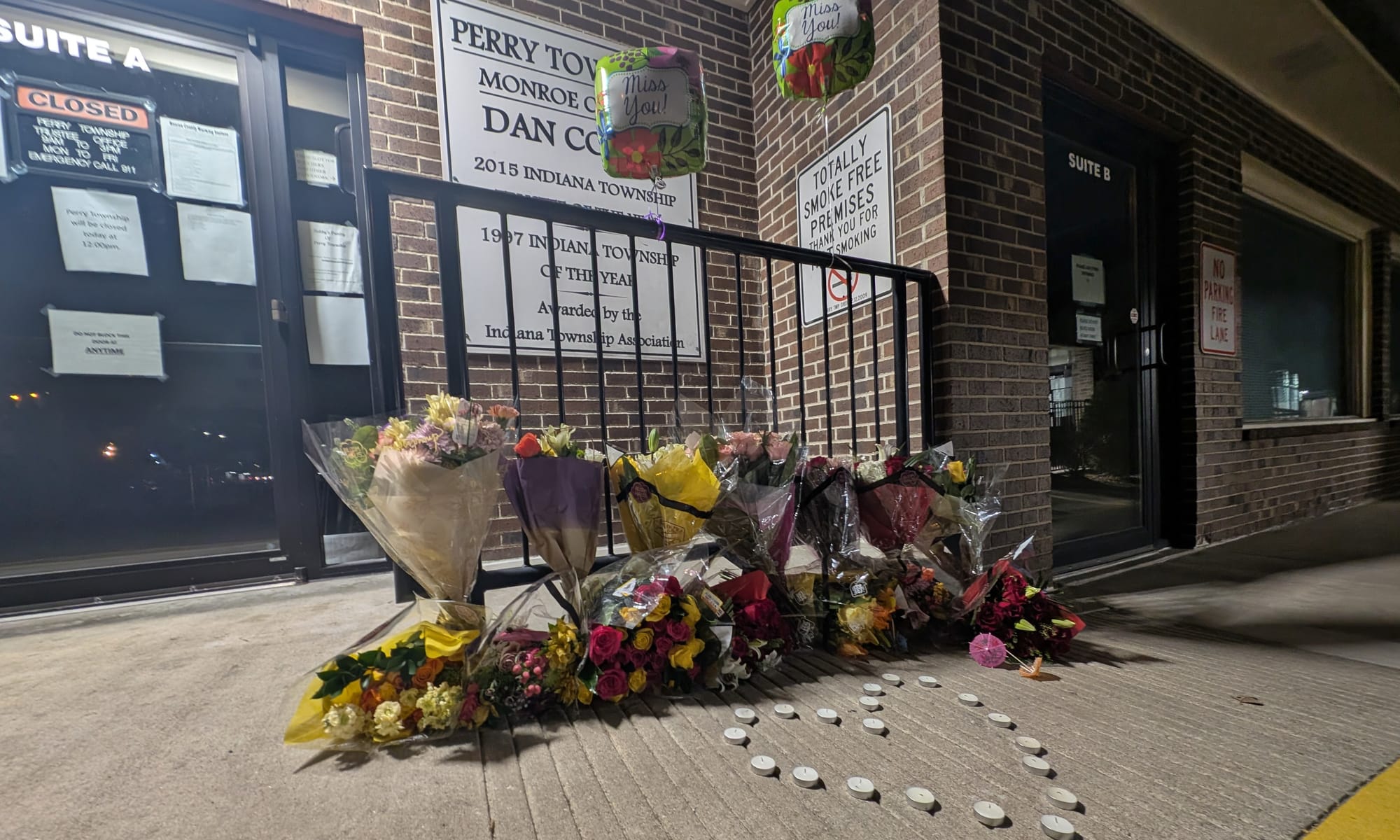 Flowers, balloons and candles have been placed outside the Perry Township offices as a memorial to township trustee Dan Combs, who died on Tuesday.