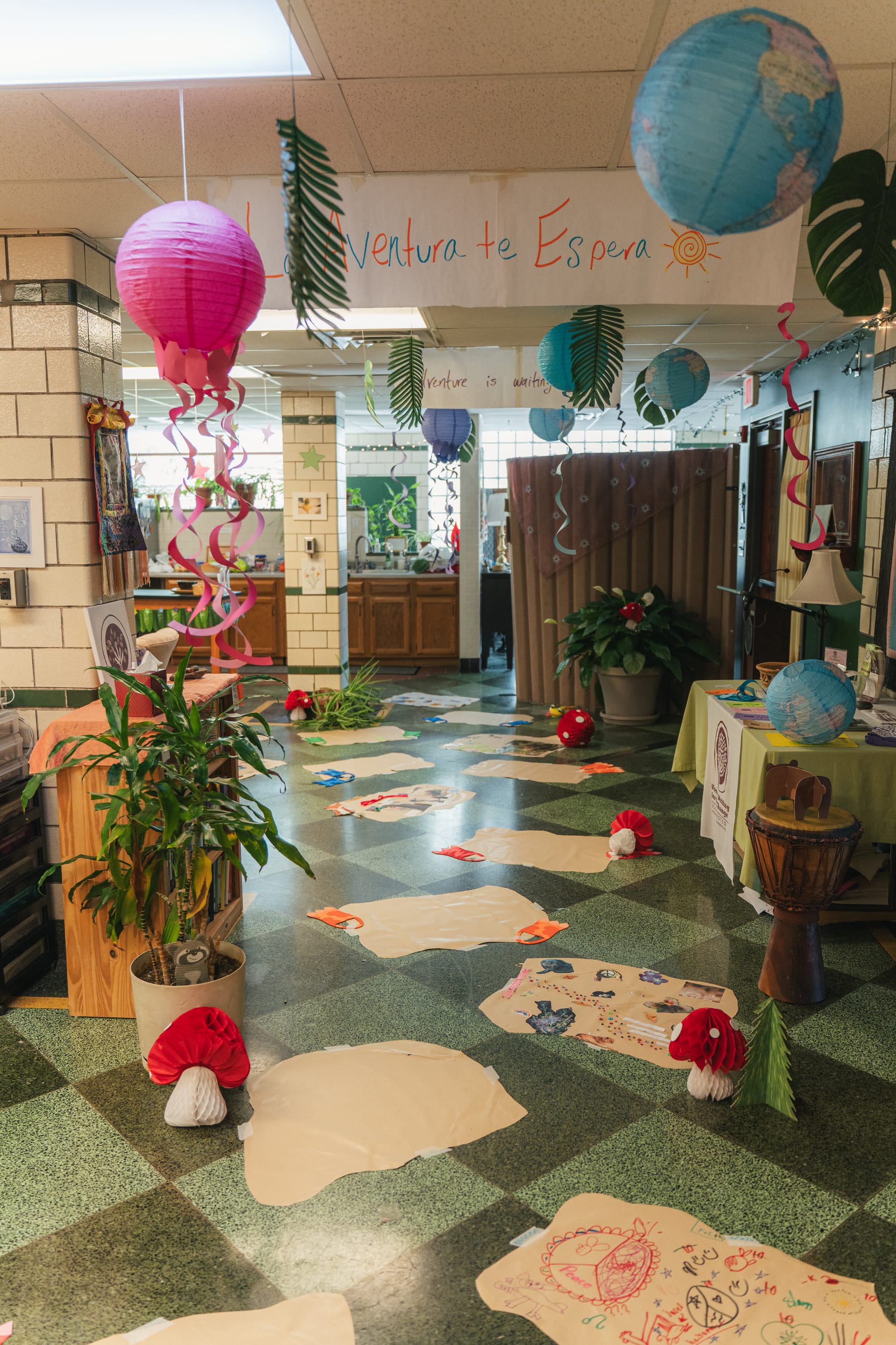 In addition to circle time, the camp featured a balance of activities, crafts, and small group discussions. Throughout the week, the girls designed paper stepping stones, representing their various adventures; paper hearts and stars that hang from the ceiling, with desires and wishes for themselves and for others. On Wednesday, campers spent the day out and about downtown Bloomington. On Thursday, they visited the playground at the Waldron, Hill, and Buskirk Park, across the street from Women Writing.