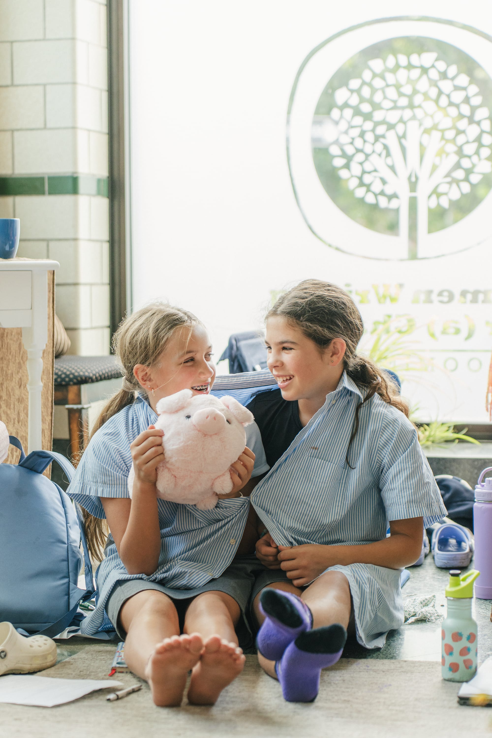Described as the camp’s mascot, this stuffed pig, which campers Claire and Fiona found at the Book Corner during their trip around downtown Bloomington, is named Sir Jeremy Piggleton, III.