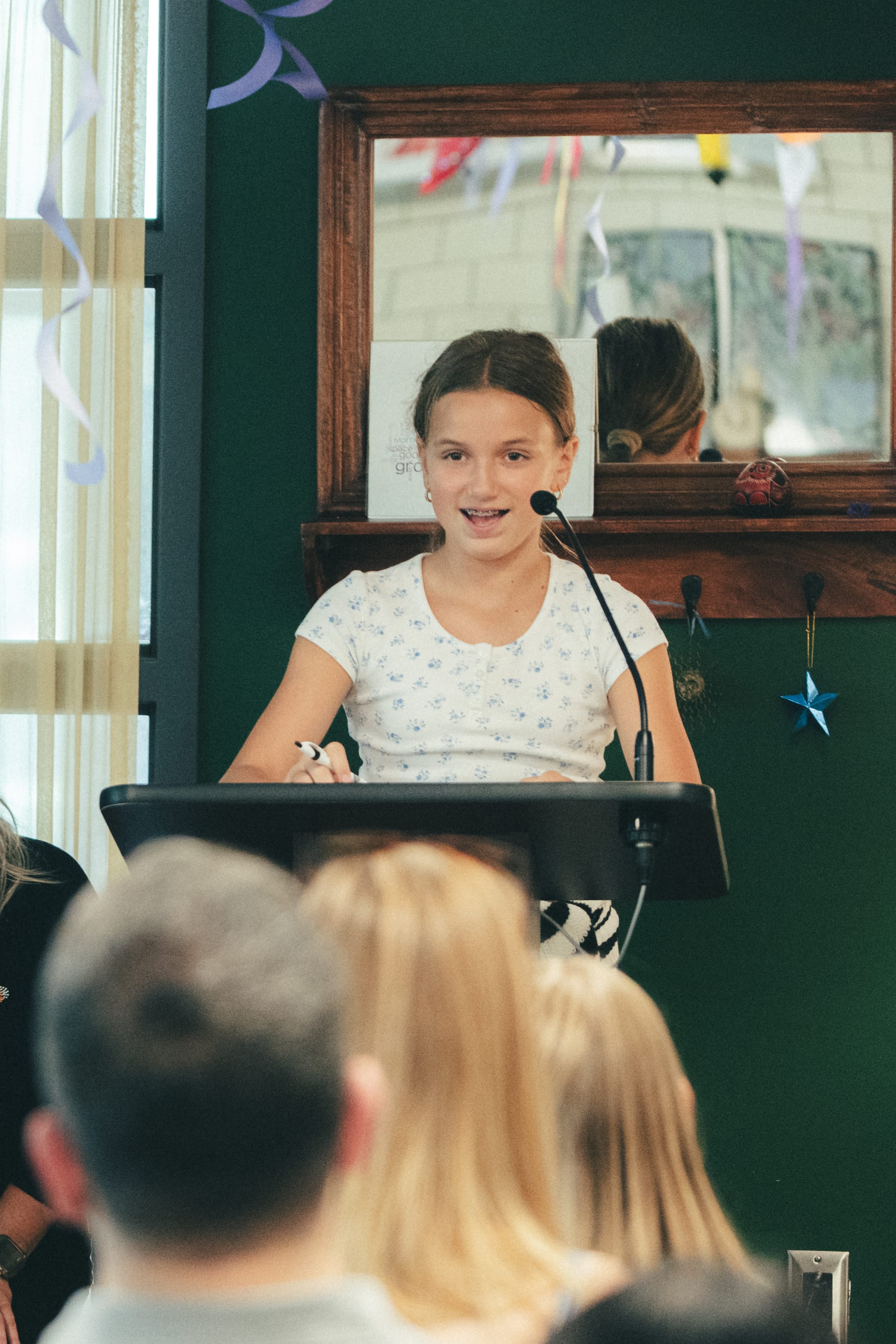 Each camper read a piece at the podium—stories and poems of reflection, sadness, stars, and change.