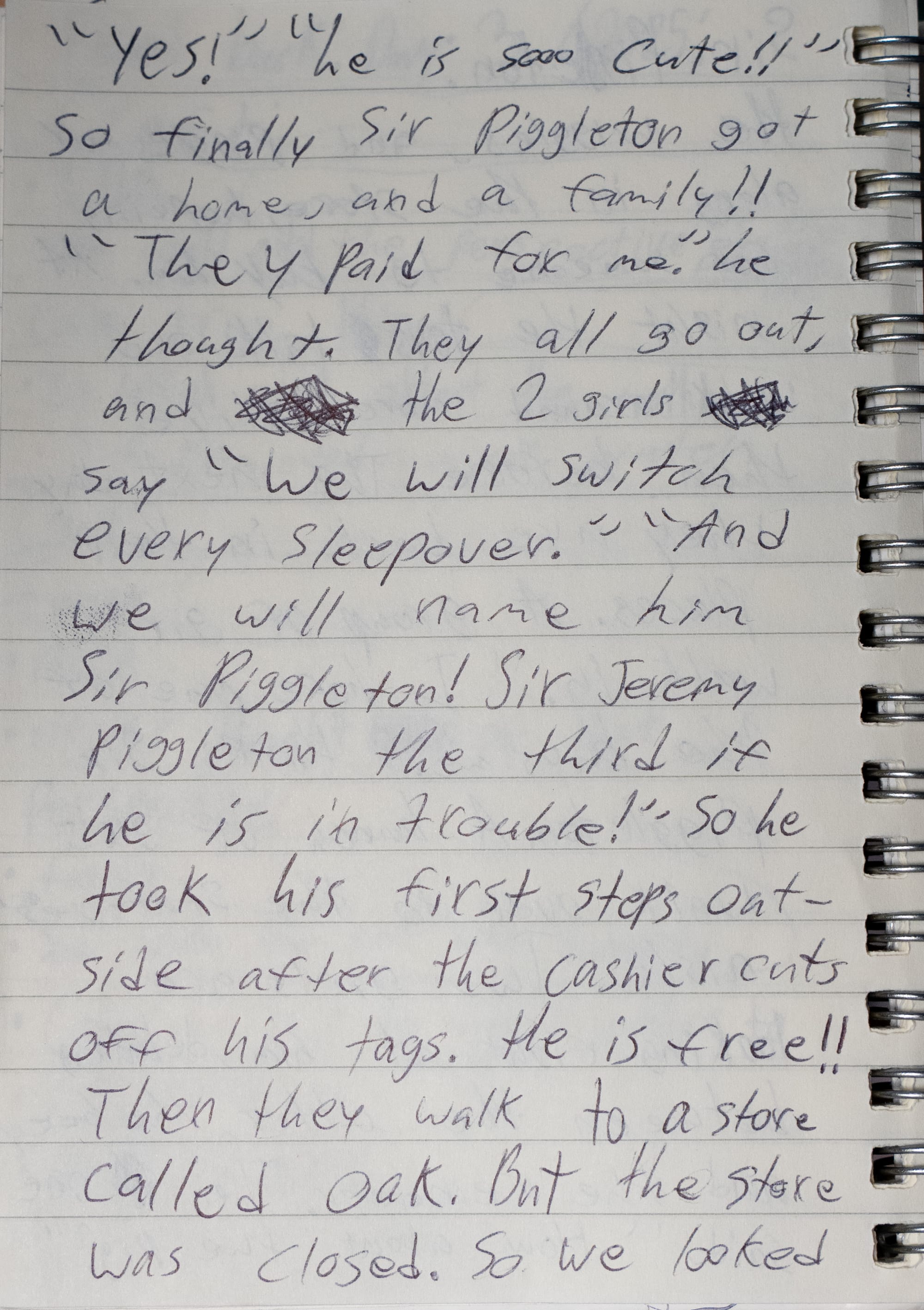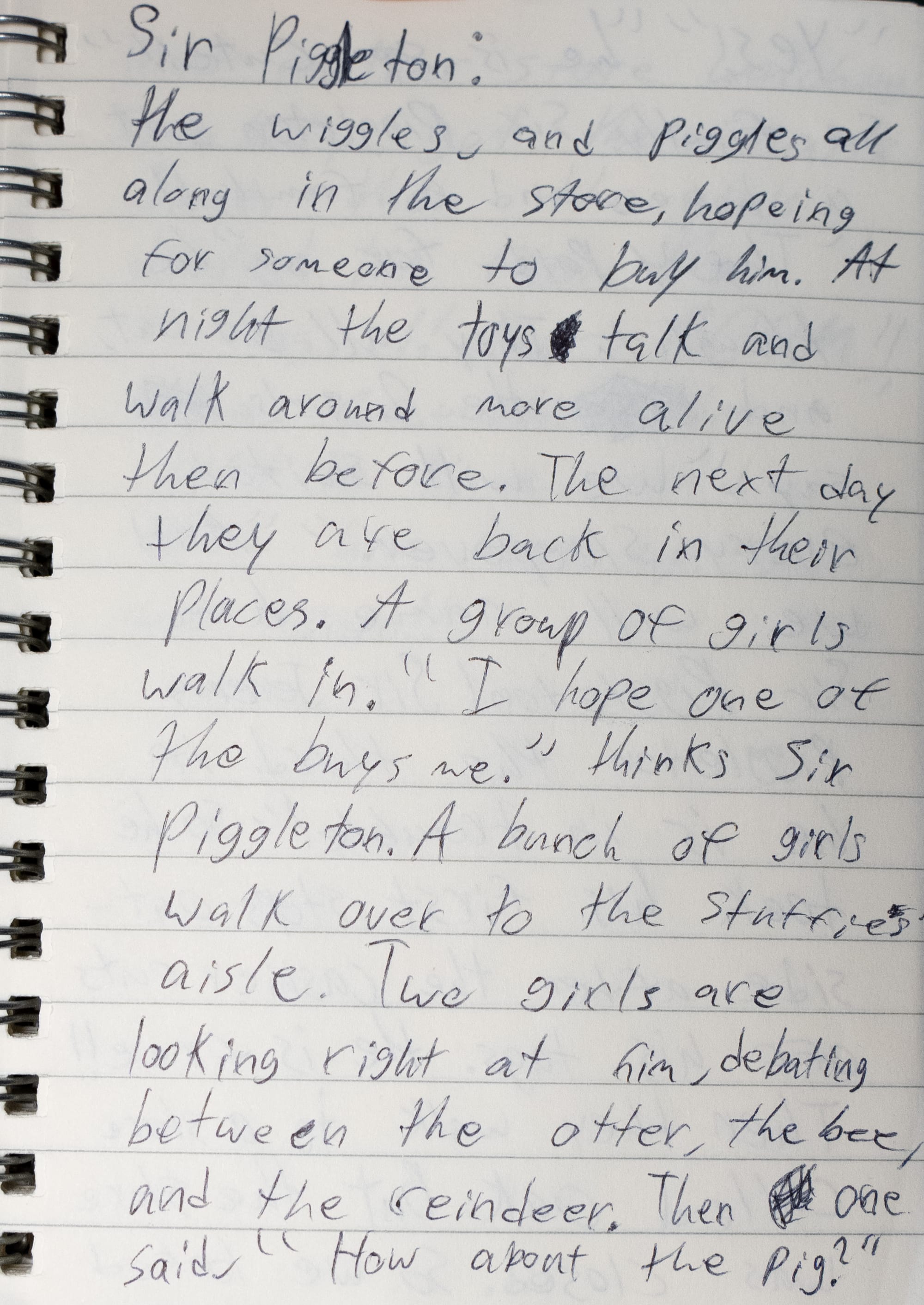 Fiona wrote about Sir Piggleton, the camp's stuffed mascot for the week. (July 11, 2025)
